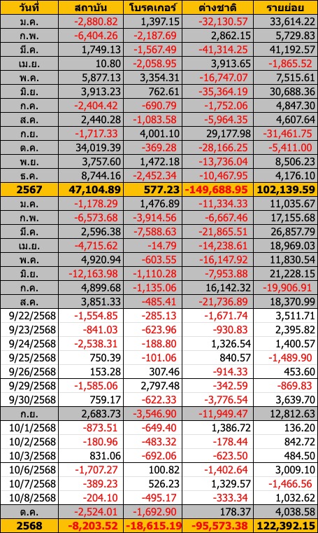 Sinthorn Summary 9/10/2568 : ต่างชาติขายสุทธิ -434.10 ลบ.