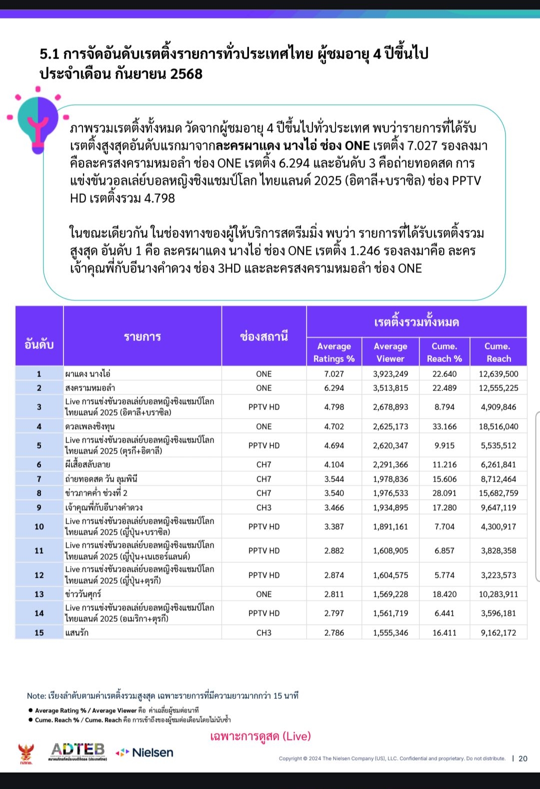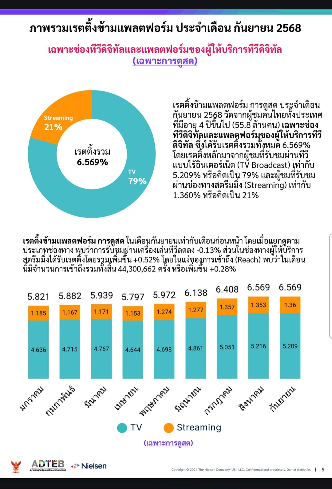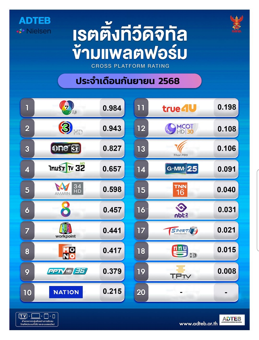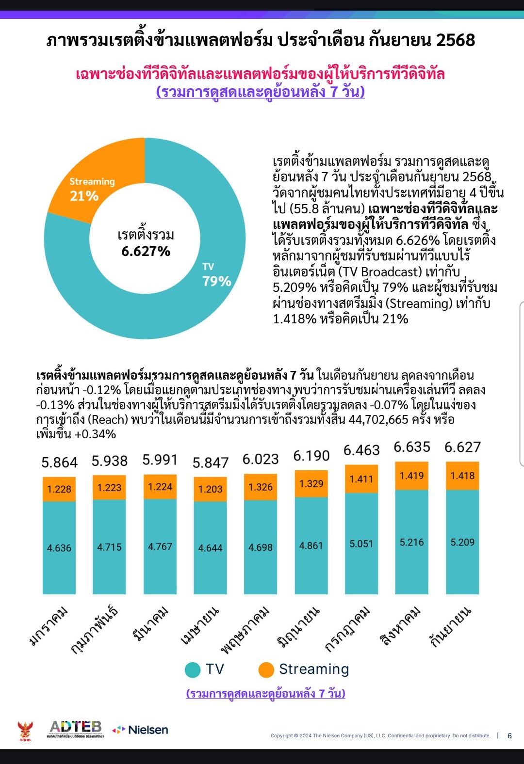 🔎 รายงานเรตติ้งทีวีดิจิทัลข้ามแพลตฟอร์ม (Cross Platform Rating) ประจำเดือนกันยายน 2568