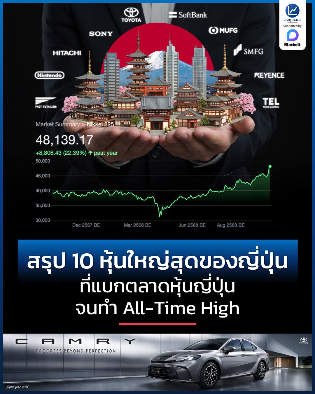 สรุป 10 หุ้นใหญ่สุดของญี่ปุ่น ที่แบกตลาดหุ้นญี่ปุ่น จนทำ All-Time High /โดย ลงทุนแมน