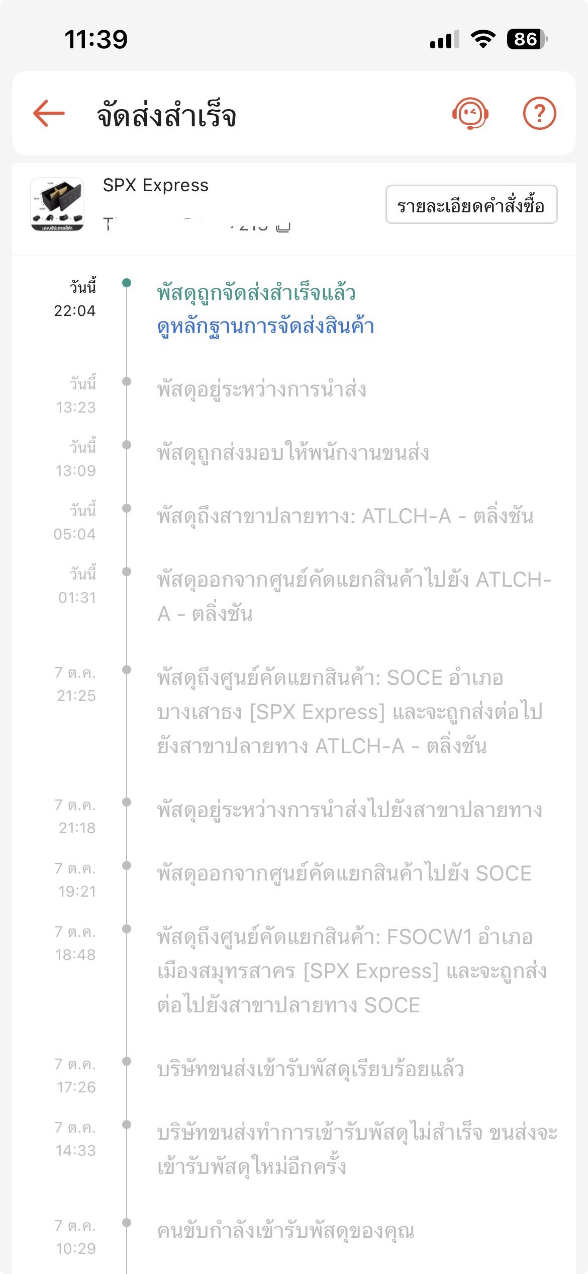 - จนเวลา21:10น. มันขึ้นสถานะว่า “เกิดปัญหากับการพยายามจัดส่งในวันนี้: สินค้าของคุณจะถูกจัดส่งอีกครั้งภายใน1-2วันทำการ“ แล้วก็เหมือนถูกตีกลับไปที่คลัง วันที่ 7 ฝนตกพอดี ถึงฝนจะหยุดตั้งแต่ทุ่มนึงแล้ว แต่อันนี้ก็เข้าใจได้