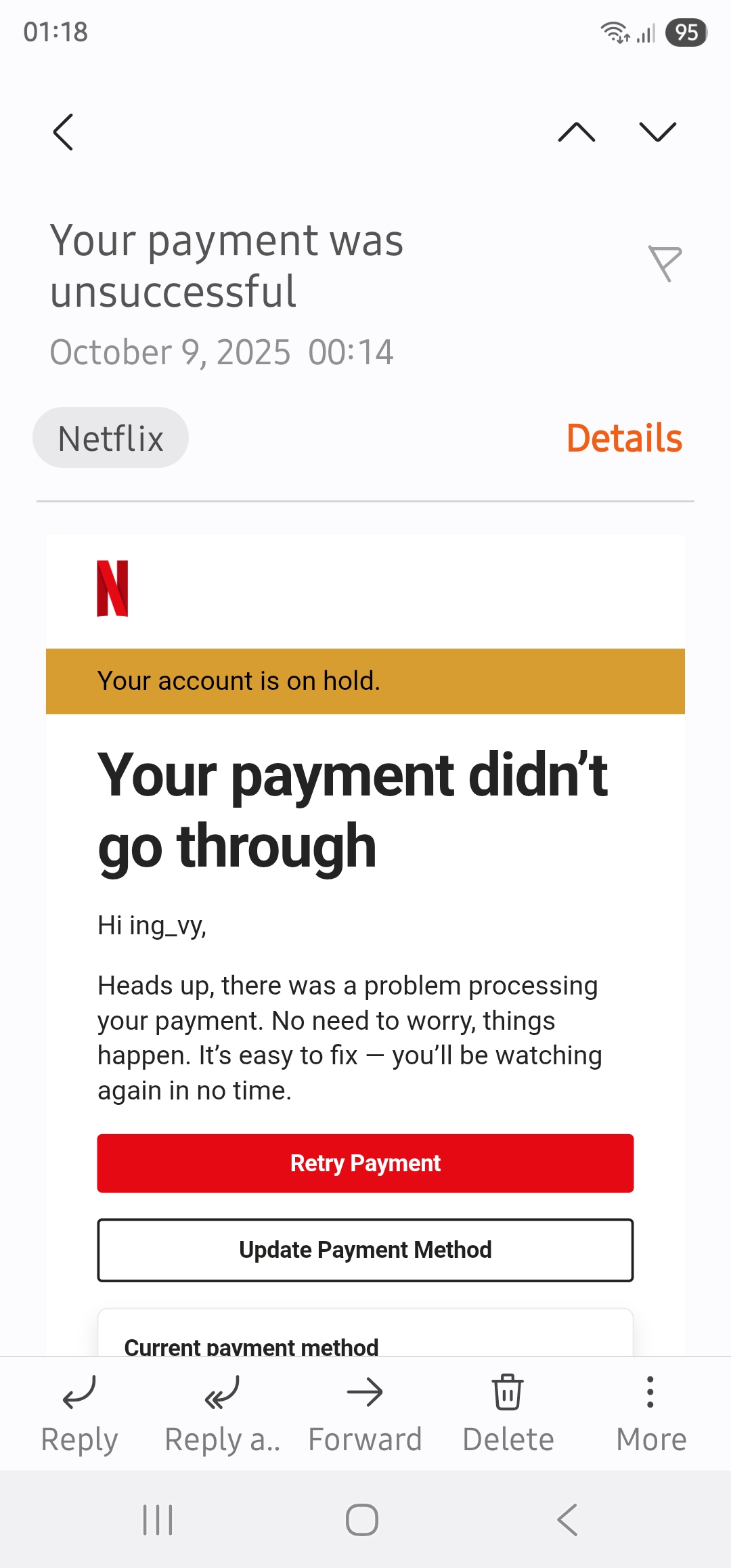 ผูกจ่าย Netflix กับ AIS มาตลอด ไม่มีปัญหา แต่จู่ๆ Netflix เข้าดูไม่ได้ ไม่สามารถ process my last payment งงค่ะ