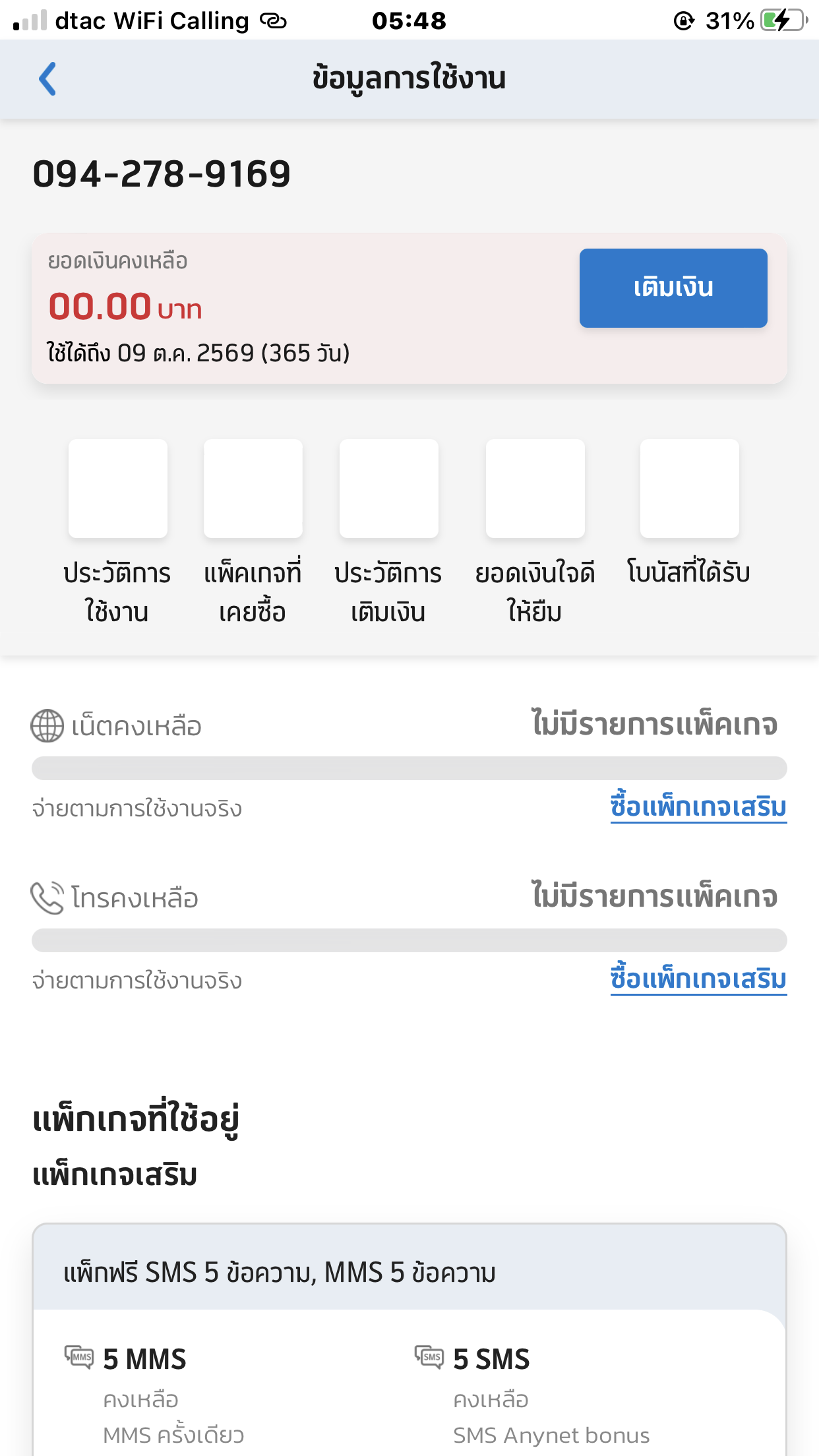ยกเลิกแพ็คเกจเสริมดีแทคในแอพไม่ได้