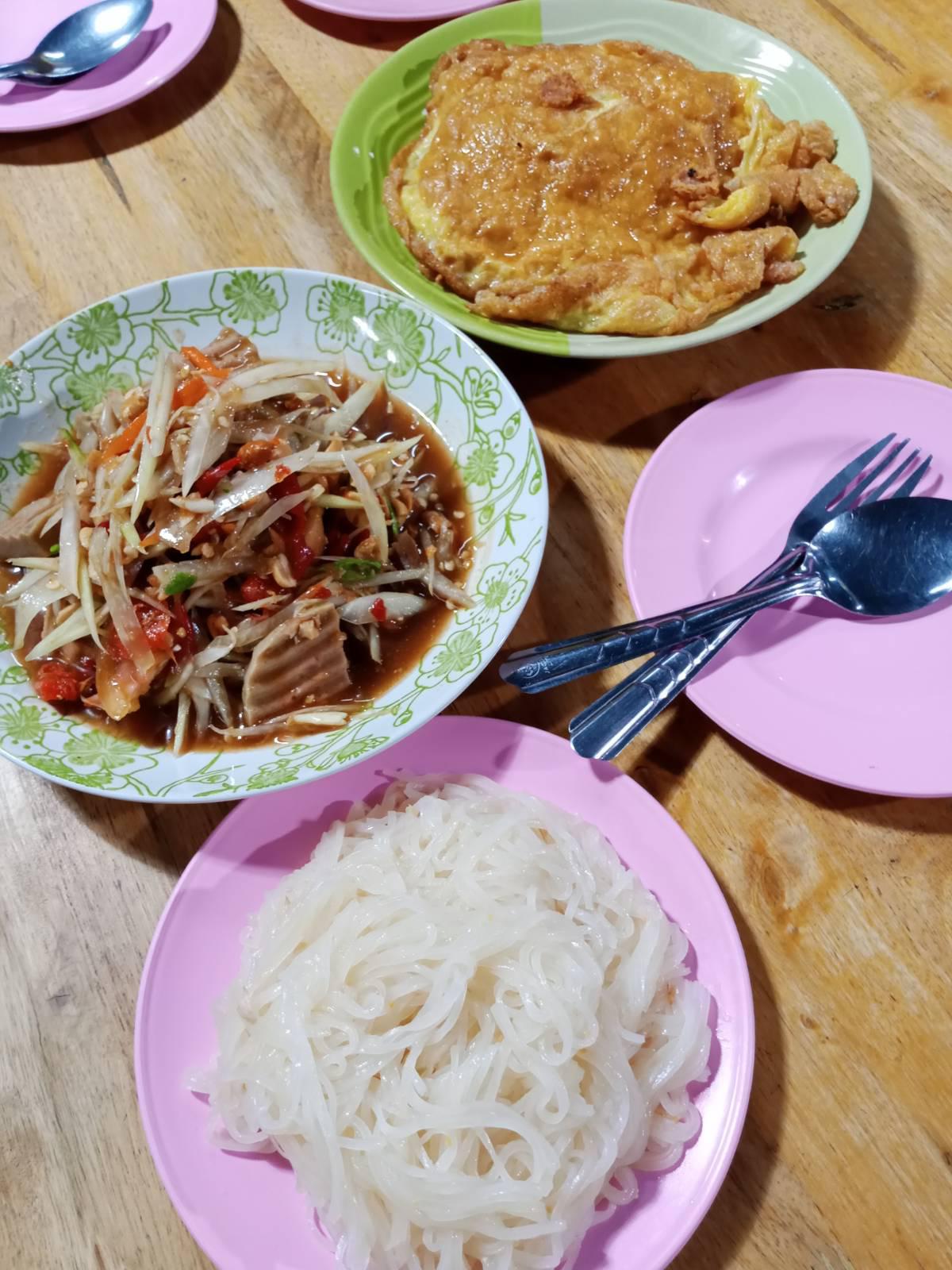 ตำโคราช ไข่เจียว และ เส้นเล็ก