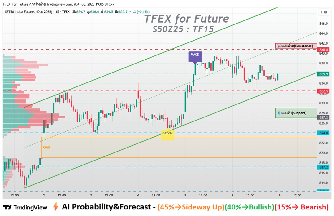 🔹 40% → Bullish Break 842 → เป้า 845