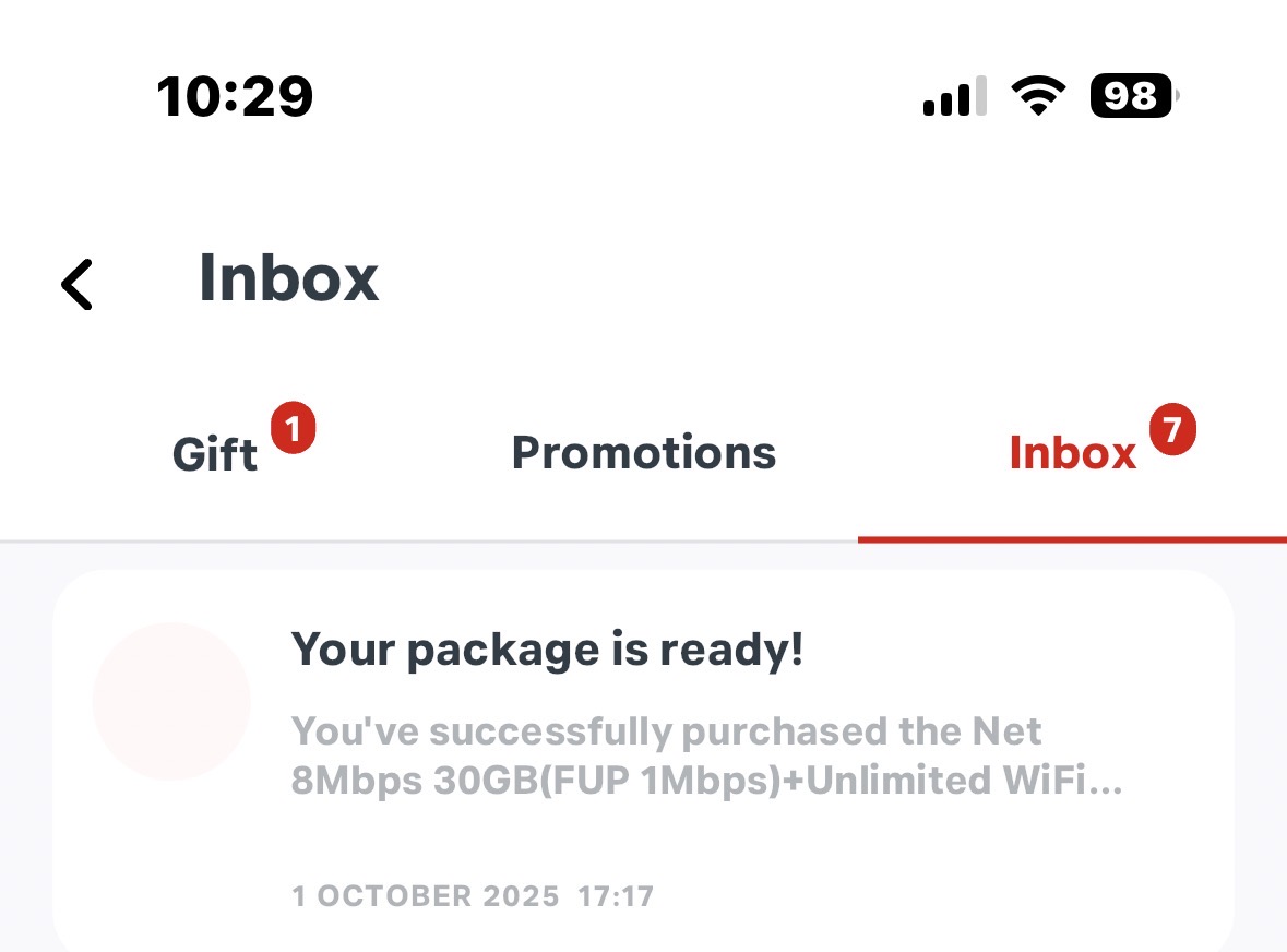 เติมแพ็คเกจเน็ตแต่ข้อความไม่เข้า