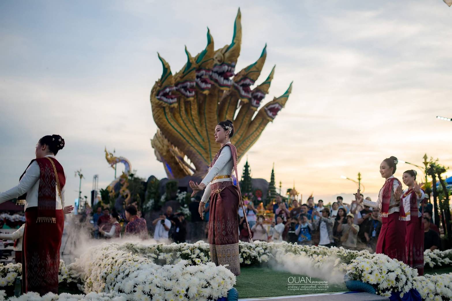 แห่มาชมมืดฟ้ามัวดิน! ชาวบ้านนับหมื่นล้นริมโขงดู “แต้ว” คำแก้วรำนาคีถวายพญานาค