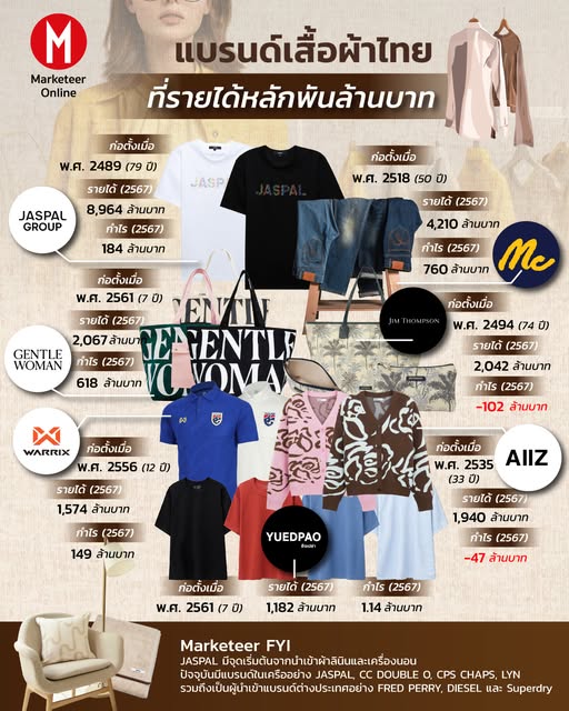 แบรนด์เสื้อผ้าไทยหลายเจ้า รายได้แตะหลักพันล้าน! ใครว่าของไทยไม่แพ้ของนอก 💥