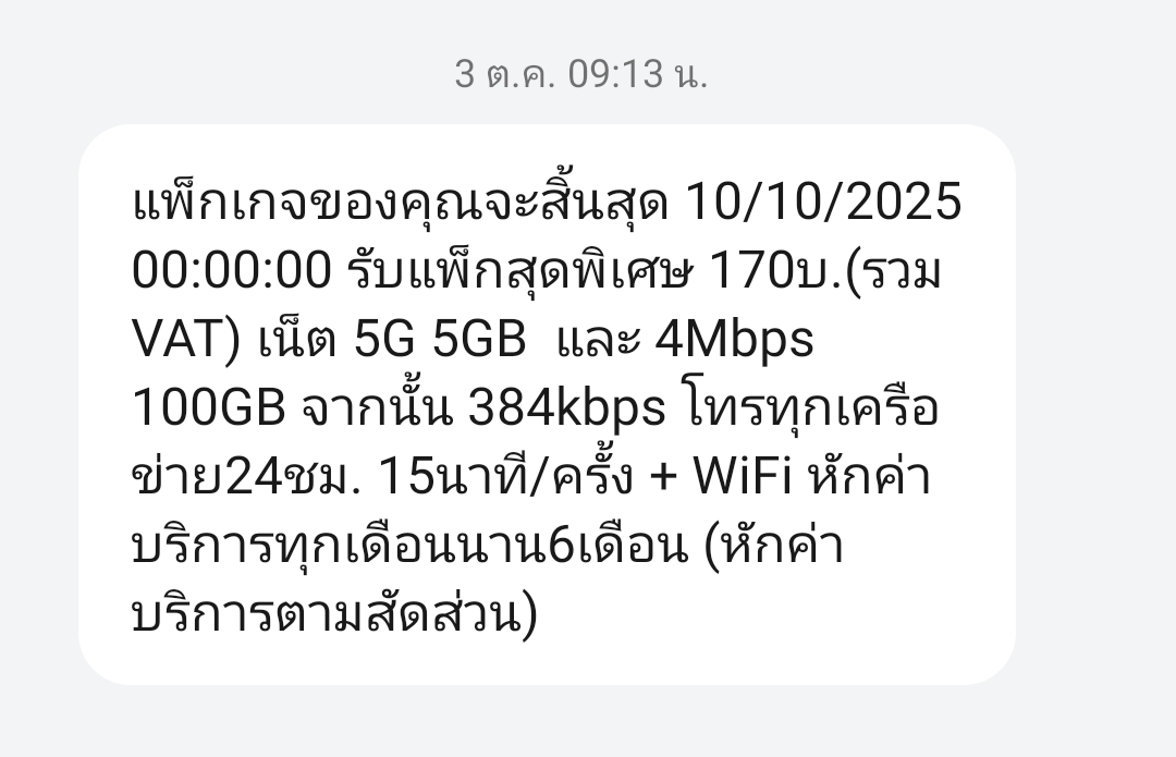 สวัสดีค่ะ มีเรื่องอยากสอบถาม พอดีว่าเราใช้ซิมเน็ต เราจะเติมเงินทุกๆครั้งที่มีการแจ้งเตือนว่าถึงวันเน็ตหมด แต่เมื่อวันที่07/10/2568 เน็ตใช้ไม่ได้เลย เน็ตอ่อนมากกก เราจึงเข้าใจว่าเน็ตหมดรึป่าว แต่พอดูกำ