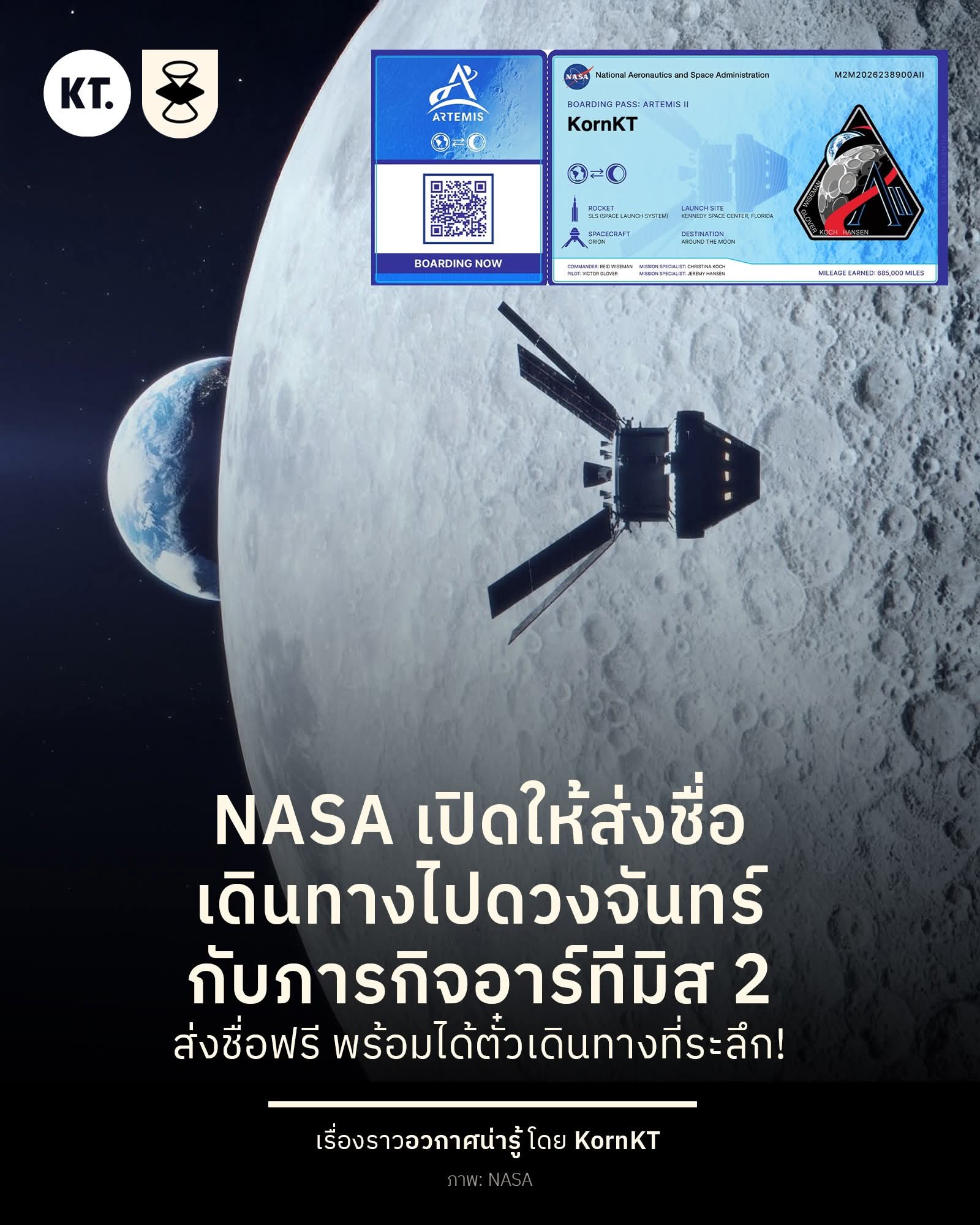 ไปดวงจันทร์กัน! NASA เปิดให้ทุกคนสามารถส่งชื่อตนเอง (หรือคนที่คุณรัก) เดินทางไปท่องดวงจันทร์ พร้อมกับภารกิจอาร์ทีมิส 2 และมีแจกบอร์ดดิ้งพาสที่ระลึกให้เก็บสะสมแบบฟรี ๆ อีกด้วย!