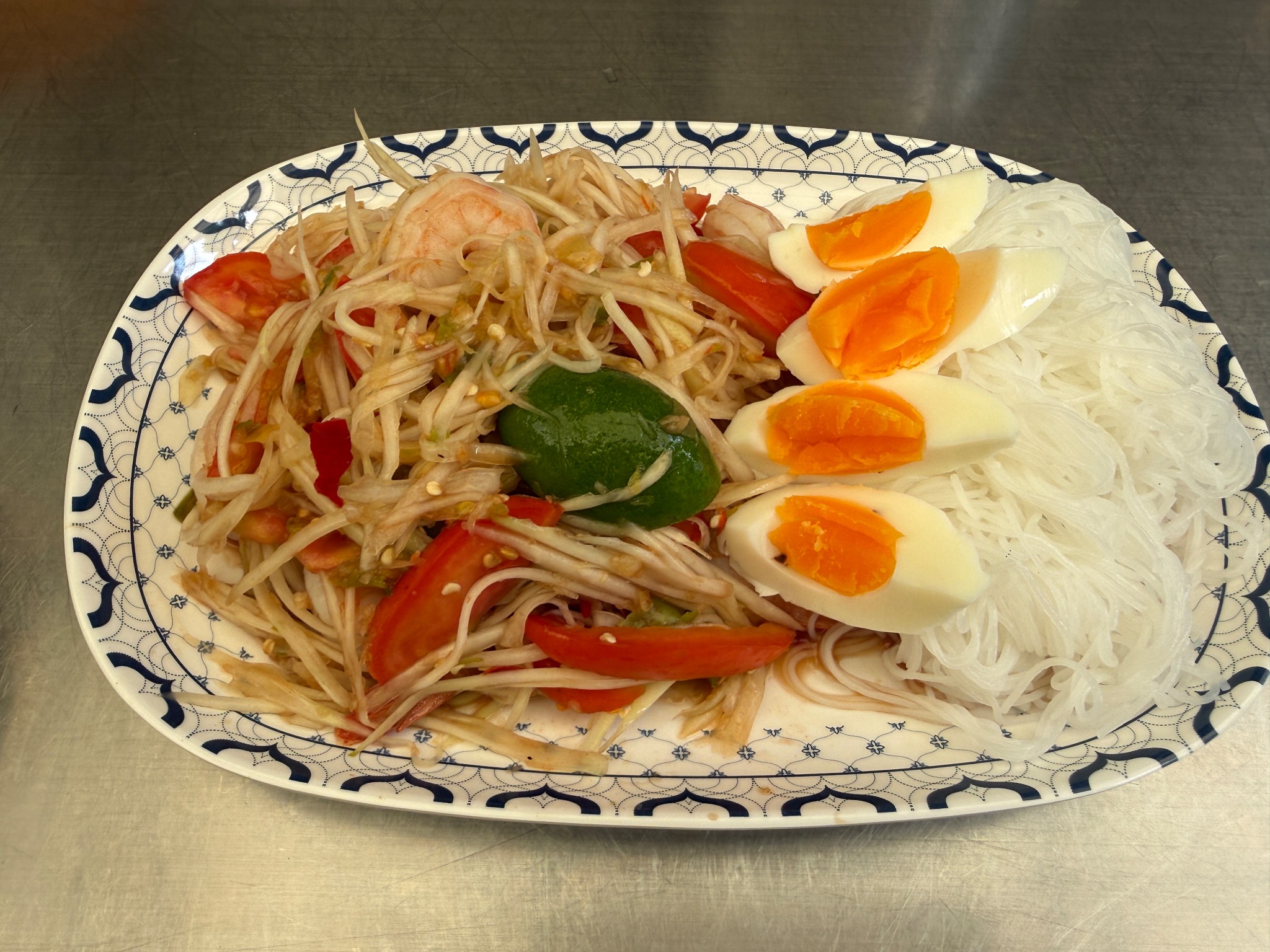 ข้าวยำไก่แซ่บ +สาคูไส้หมู 🍗🐷