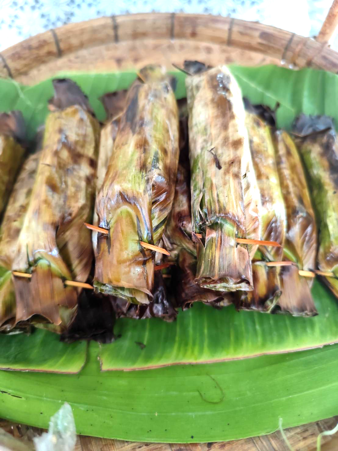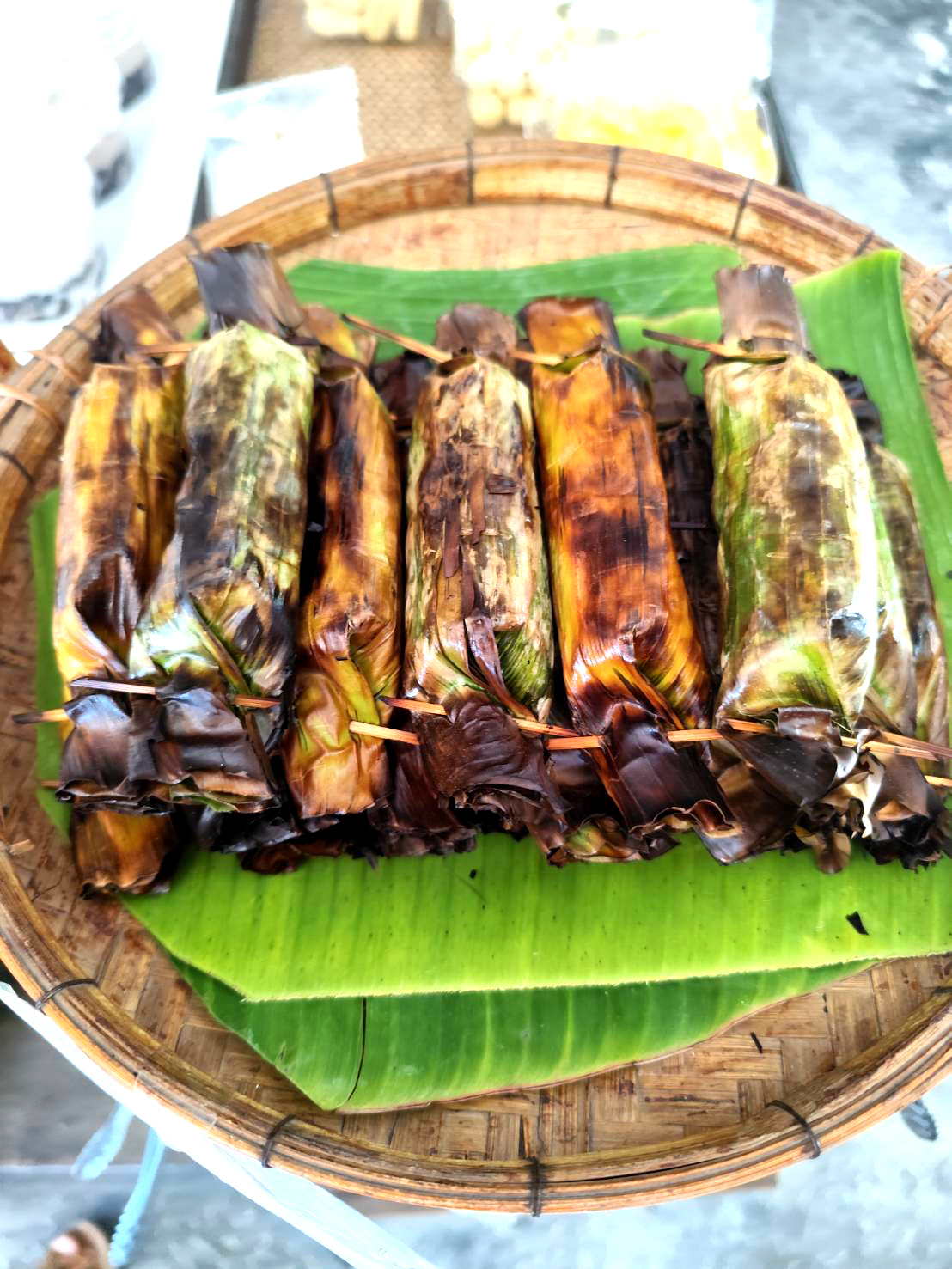 ข้าวเหนียวปิ้ง ไส้กล้วยและไส้เผือก
