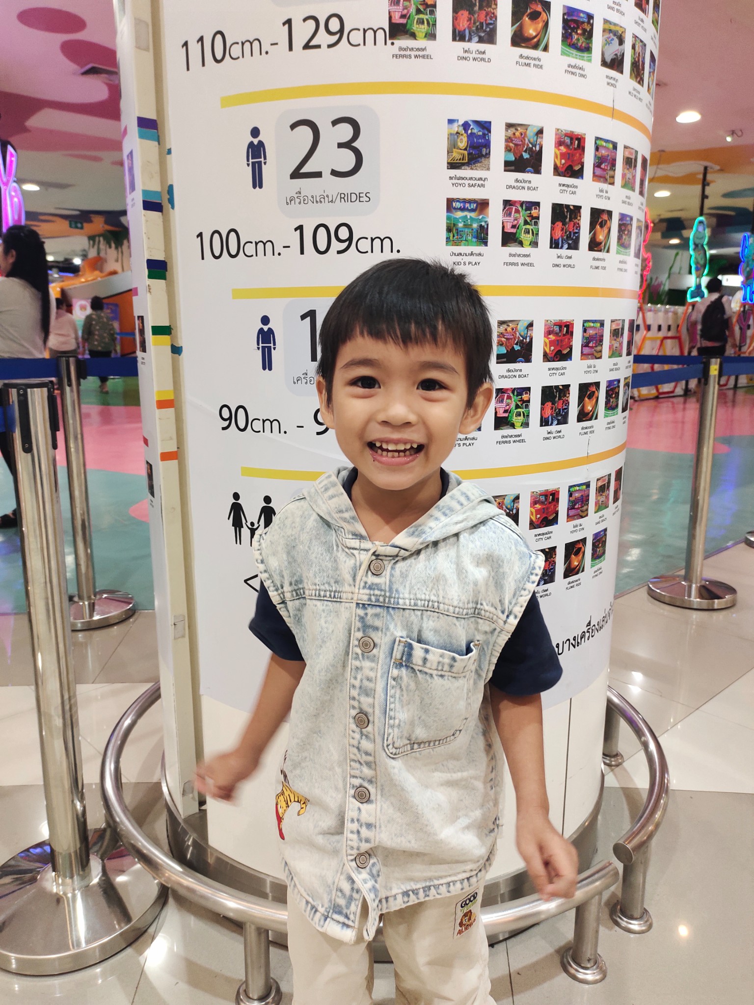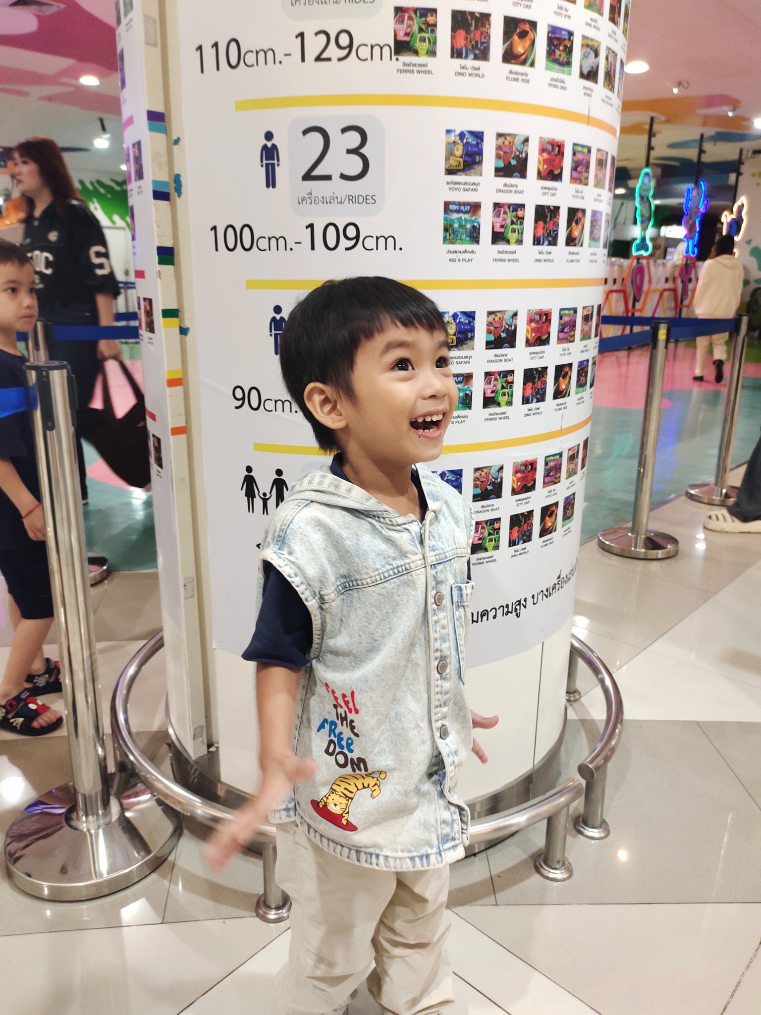 👉🏻 มาถึงแล้ว 🎊 ก็พาน้องมาวัดส่วนสูงกันก่อนเลย รอบนี้สูง 104 เซนติเมตร 🎪 เล่นเครื่องเล่นได้ 23 เครื่องเล่น 🎡 ราคาบัตรจะอยู่ที่ 240.- บาท เล่นได้ไม่อั้น ไม่จำกัดรอบ 😲 แต่ แต่ แต่ พิเศษไปกว่านั้น รอบนี้มี 5 เครื่องเล่นมาลงใหม่และน้องก็เล่นได้ตามความสูง เลยซื้อเพิ่มเป็น 360.- บาทค่ะ ส่วนผู้ใหญ่ คนละ 120.- บาท เล่นได้ไม่อั้น ไม่จำกัดรอบเช่นกันคะ ⭐👍🏻
