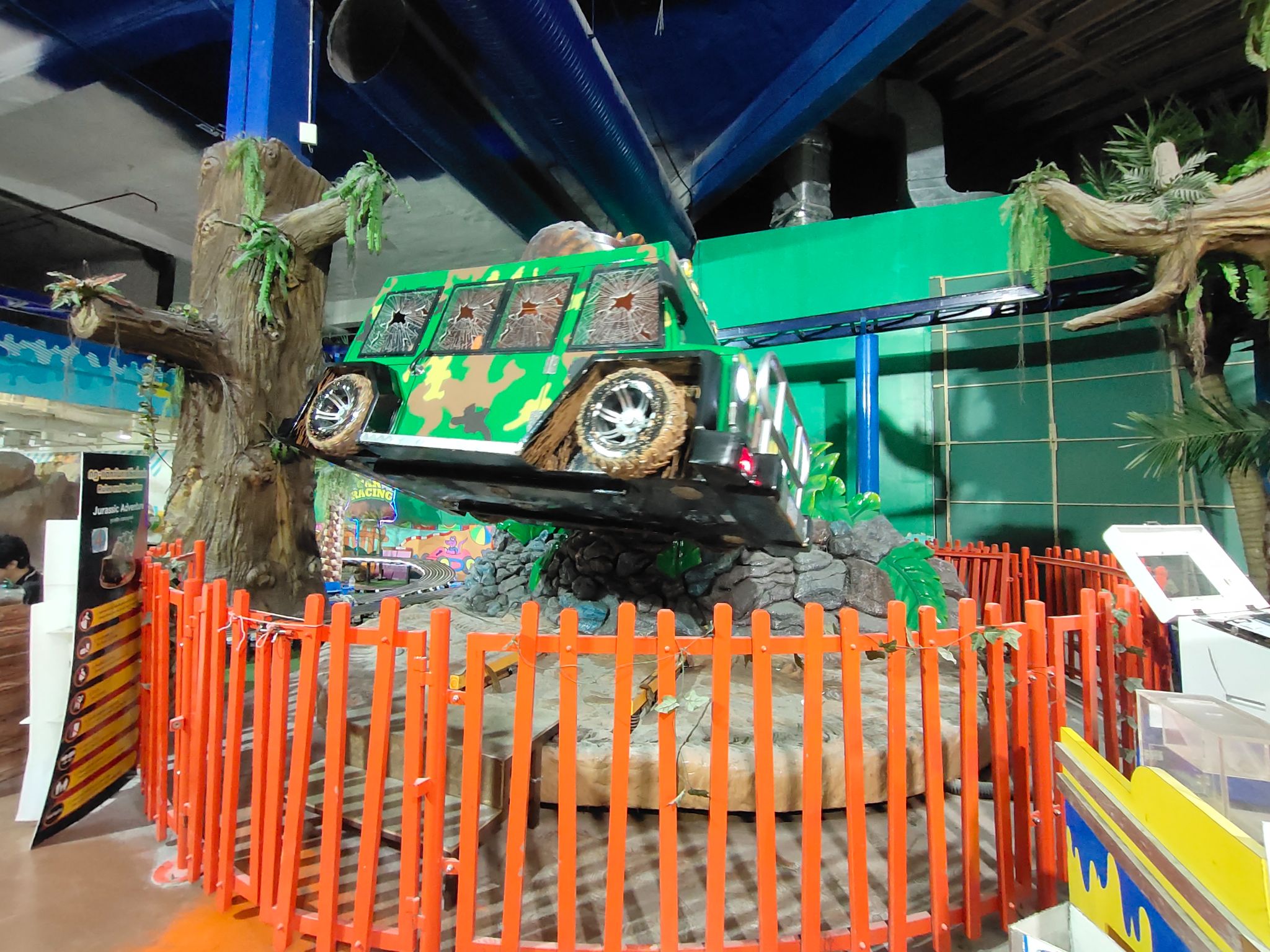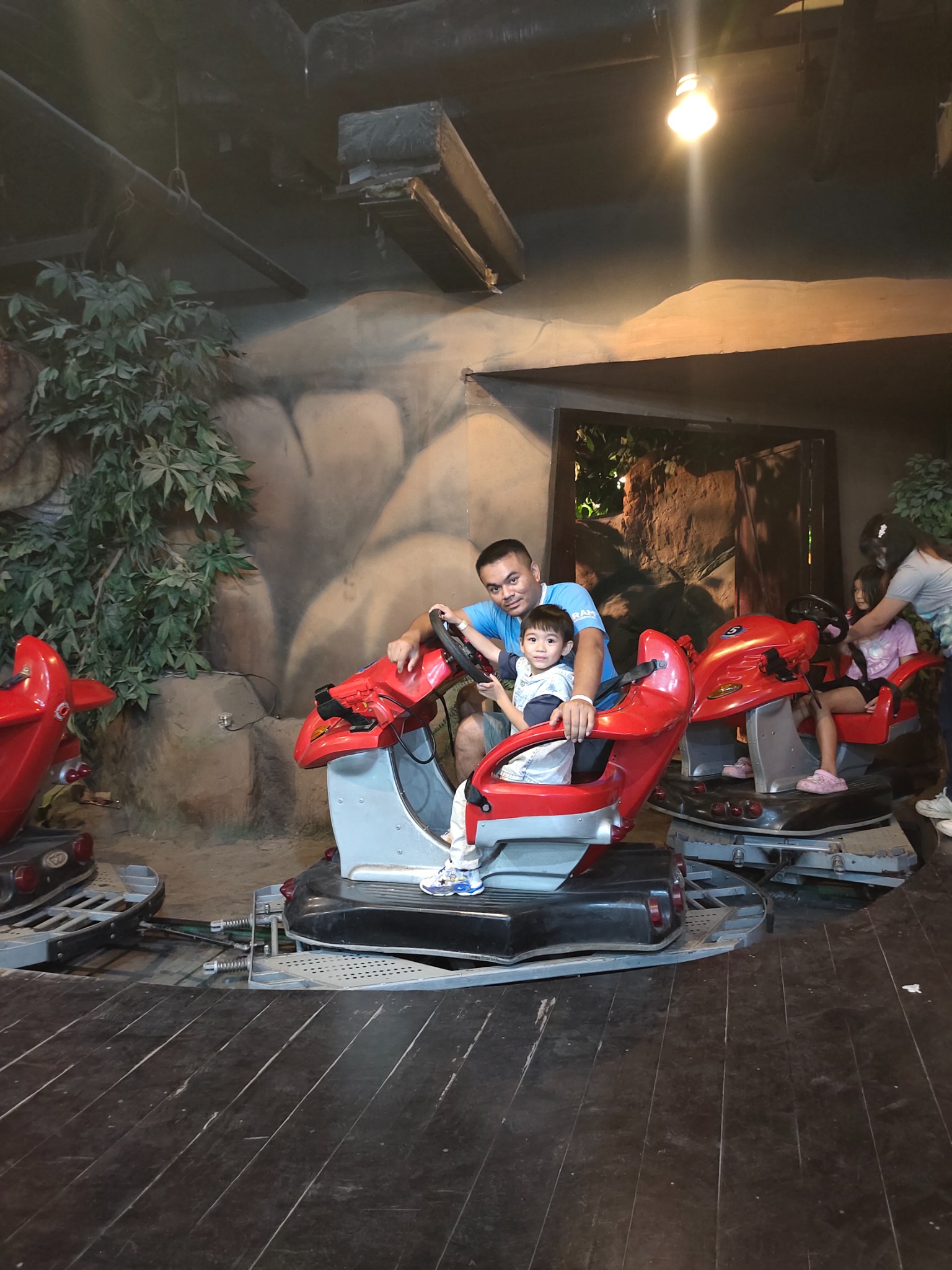 Jurassic Swinger :: รถจำลองที่พาเราไปบุกแดนไดโนเสาร์ เขย่าไปเขย่ามา พร้อมเสียงไดโนเสาร์ที่กำลังจะเขมือบรถเราตลอดเวลา มีหน้าจอให้เราดูด้วยนะ