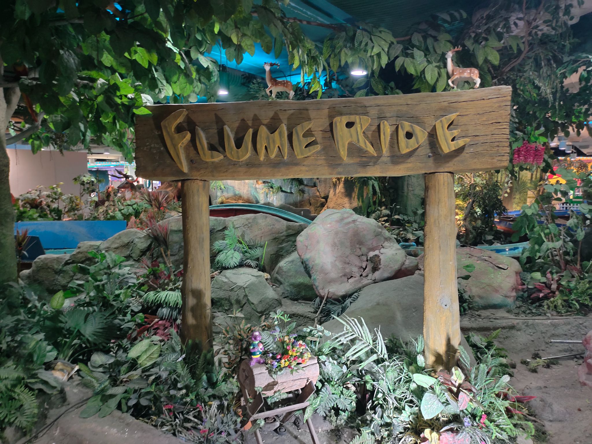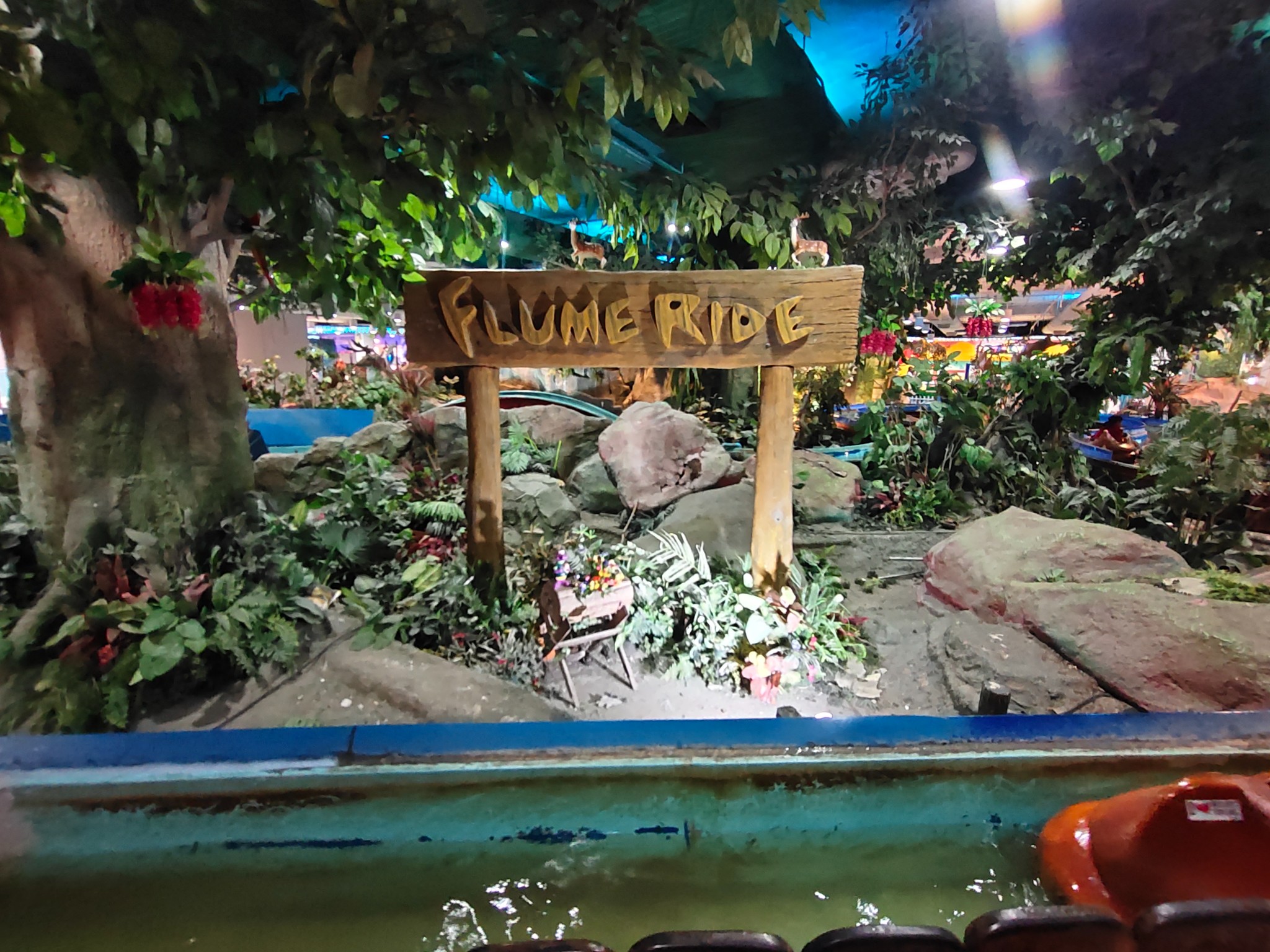 Flume Ride :: ล่องแก่งลำธารน้ำใสน้อยๆ ที่รายล้อมไปด้วยต้นไม้สีเขียว และสัตว์ป่าจำลองน้อยใหญ่