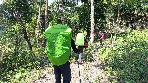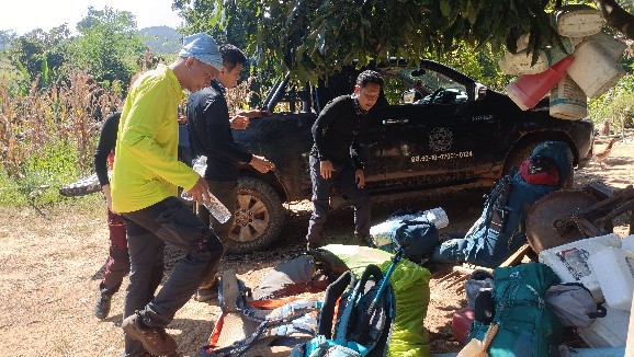 *** วันที่ 2 เราตื่นกันตั้งแต่ตีห้า เพื่อเตรียมตัวเก็บข้าวของ เพราะเช้าต้องเขาฟังการอบรมชี้แจงเกี่ยวกับเส้นทางการเดินป่าและความปลอดภัยก่อน การออกเดินทางจริง พวกเราต้องขึ้นรถ 4WD ของอุทยานไปอีกประมาณ 2 ชั่วโมงเพื่อไปจุดเริ่มเดินซึ่งอยู่ไม่ห่างจากอุทยานมากนัก ประมาณ 20 กิโลกว่าๆ แต่เป็นเส้นทางที่ต้องใช้เวลานานม๊ากกก..กว่าจะถึง เพราะเส้นทางเข้ายังเป็นดินลูกรัง และเป็นทางสัญจรของชาวสวนชาวไร่ ที่ต้องเอื้อเฝื้อในการสวนกัน