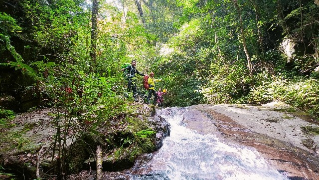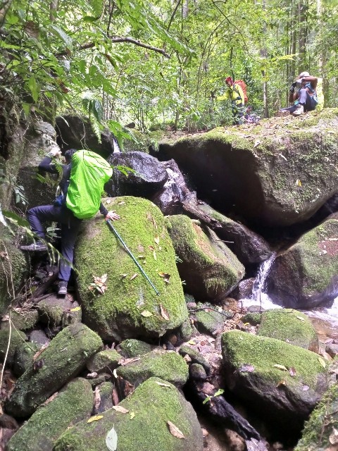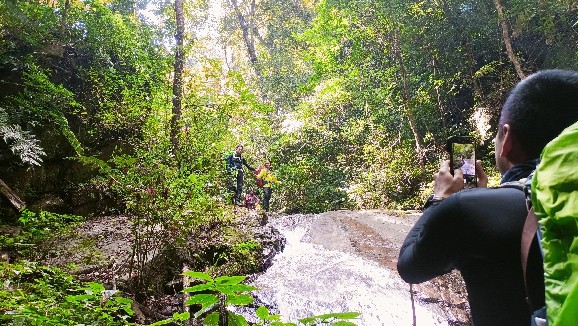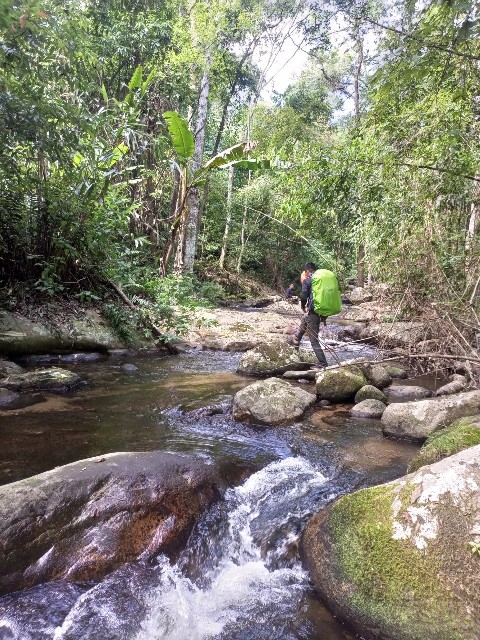 เราเริ่มเดินทางกันต่อ เพื่อไปพิชิตยอดเขาขนุน ที่ไม่มีขนุน... 555 จากจุดพักแรมคืนแรก ถึงปลายทางยอดเขา เราจะใช้เวลาประมาณ 6 ชั่วโมงเนื่องจากเส้นทางเดินของเรา ต้องเดินเราะริมลำธาร ข้ามน้ำ ผ่านเหว ผ่านหน้าผา ผ่านทางชัน ซึ้งต้องใช้สกิลสี่ขา แถมกระเป๋าสัมภาระก็เป็นภาระจริงๆ ผมนิอยากจะทิ้งกระเป๋าจริงๆ.... 555 มันลำบากจนถามตัวเอง "ในใจ" ว่า...กูมาทำอะไรเหนี่ยยยยย.... 555