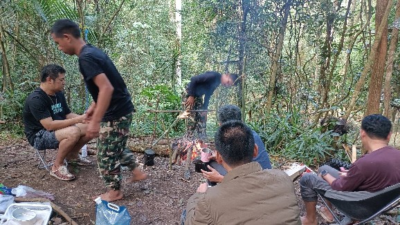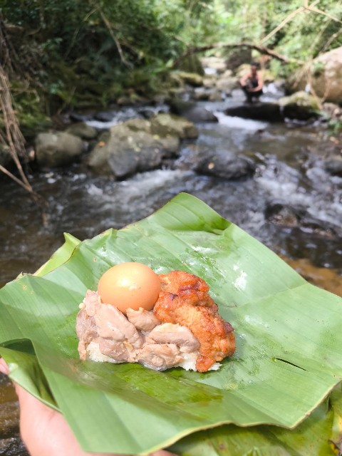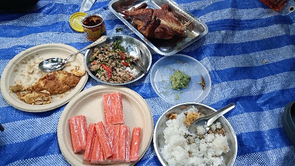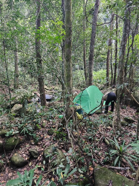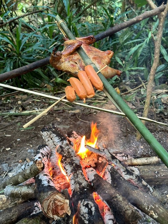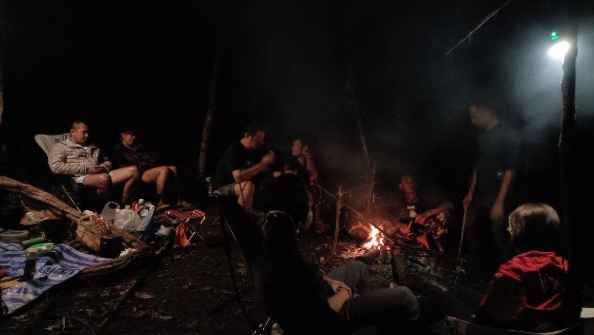 จบวันแรก ตามเวลาท้องถิ่น เราเดินถึงที่พักจุดที่ 1 เกือบ 5 โมง ต้องรีบกางเต้นท์ ประกอบอาหาร ซึ่งแน่นอนอยู่แล้วเข้าป่าแบบนี้ ไก้ย่างอาฉลอง ในตำนานต้องมาแล้วแหละ... 555 กินอิ่มนอนหลับตามอัธยาศัย ได้อยู่กับธรรมชาติแบบจริงจังดื่มด่ำเต็มที่ เพราะสัญญาณอินเทอร์เน็ตและโทรศัพท์ไม่มีเลยยย...555