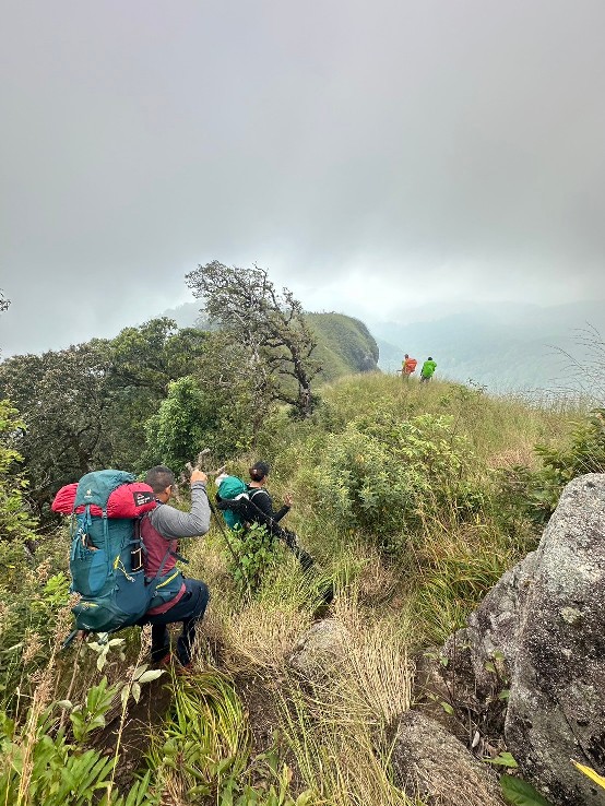 เอาจริงๆ ตอนจะจอง ผมตัดสินใจยากมากว่าจะไปเส้นทางไหนก่อน แต่ก็ฟังจากเพื่อนๆ ที่ไปเขาเย็นมาแล้ว บอกว่าข้างบนจุดกลางเต้นท์ของเขาเย็นคืนที่ 2 หนาวมาก ลมก็แรง ผมก็เลยเลือกไปเขาขนุนดีกว่า ... 555 เพราะในใจคิดว่าขอเดินแบบชิวๆ ไม่ต้องไต่ไป 1,900 หรอก...555