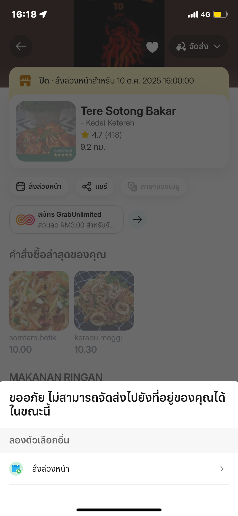 ปกติสั่งได้ แต่รอบนี้ไม่ได้ค่ะ เป็นงี้มาหลายวันแล้ว คิดถึงถึงส้มตำแล้วว🥹 แก้