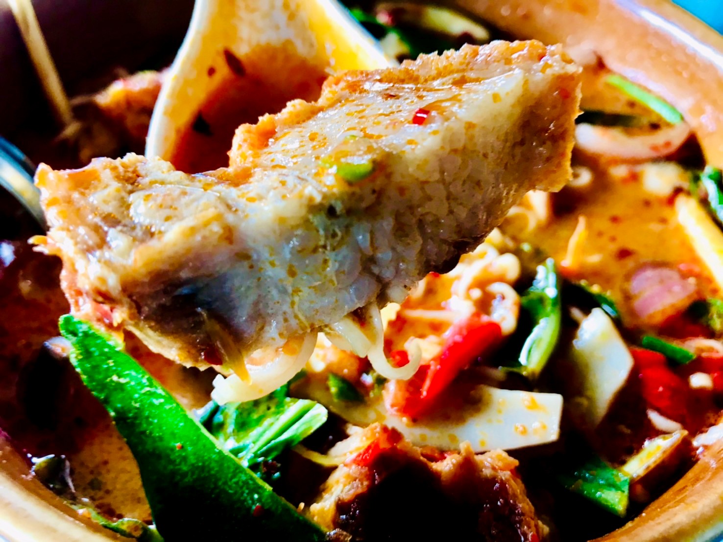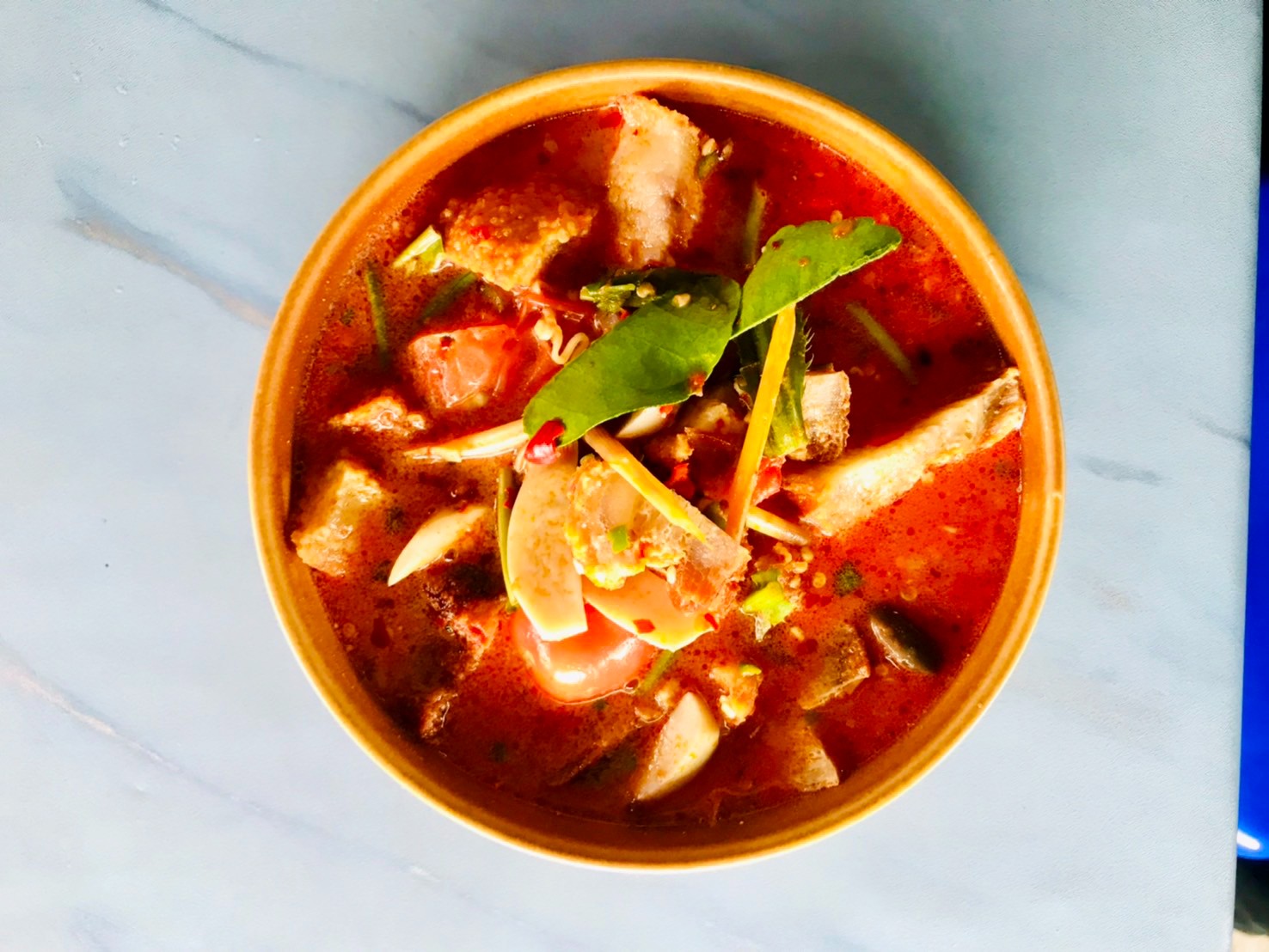 ลองสั่งเมนูที่สามารถซดน้ำได้ และได้กินหมูกรอบด้วย "มาม่าต้มยำหมูกรอบ" น้ำข้น เครื่องเน้น พริก-ขิง-ข่า-ตะไคร้-ใบมะกรูด มาเต็ม แซ่บแน่นอน..