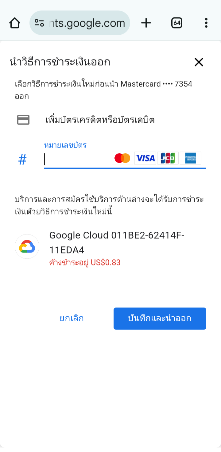 ค้างชำระ google cloud ...บัตรทรูwe gard