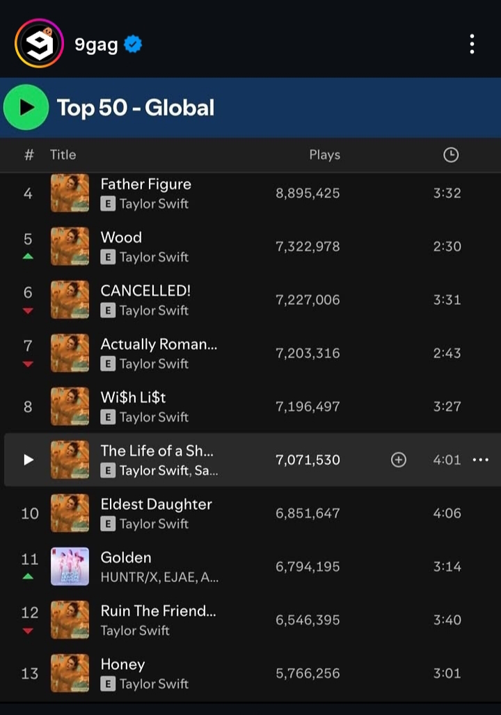... Golden เพลงเดียวที่ยืนท่ามกลางเพลงของเทย์เลอร์ สวิฟต์ ตามลำดับการเรียงลงมาในชาร์ต เพลงที่ดังไปทั่วโลกก่อนตัวศิลปิน แต่ตอนนี้ถึงเวลาพวกเธอแล้ว ที่ได้อยู่หน้าสื่อใหญ่ๆ และออกรายการต่างๆอย่างมีนัยยะ???