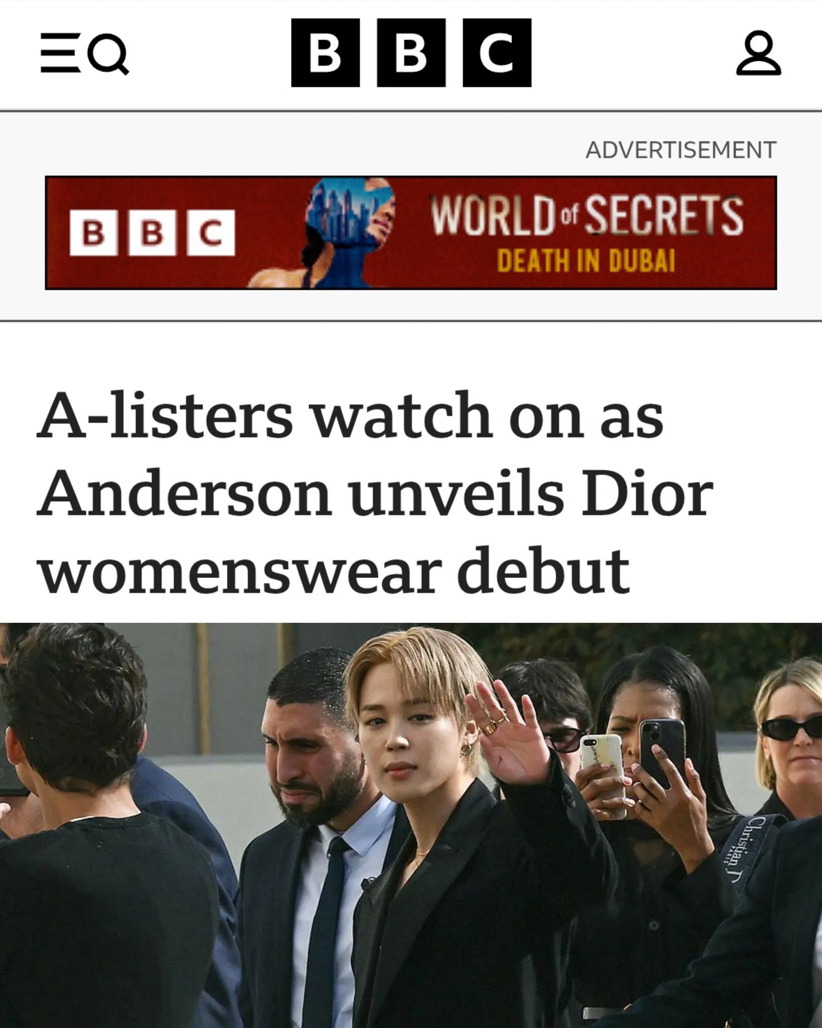 สำนักข่าว AP Associated Press (AP) ] สำนักข่าวชื่อดังของอเมริกาได้เผยคลิปบันทึกภาพช่วงเวลาที่ #JIMIN เดินทางมาถึงงานของ Dior พร้อมพาดหัวข่าวว่า "Johnny Depp และ Jimin อยู่ในรายชื่อคนดังระดับ ( A-Listers ) แถวหน้าที่ปรากฏตัวในงาน Dior