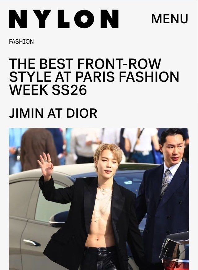 ผ่านไปครบ 1 สัปดาห์ นอกจากสื่อต่างๆฝั่งเอเชียจะลงข่าว " JIMIN STEALS THE SHOW "กันไม่หยุด ทางฝั่งยุโรป และโดยเฉพาะสื่อใหญ่ฝั่งอเมริกายังไม่หยุดเขียนข่าว BTS JIMIN โดยล่าสุด [ PEOPLE Magazine ] นิตยสาร People ได้เลือกการปรากฏตัวของ #JIMIN ในงาน DiorSS26 เป็นหนึ่งในลุคและช่วงเวลาที่โดดเด่นที่สุดจากจาก Paris Fashion Week 2025!
