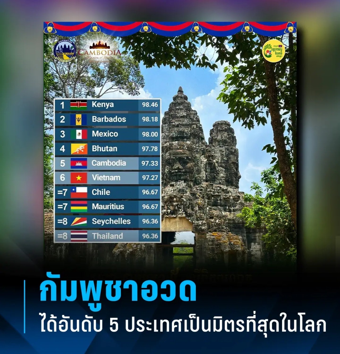 ล่าสุด ประเทศกัมพูชา ผงาด คว้าอันดับ 5 ของโลก ประเทศที่เป็นมิตรมากที่สุด เหนือ เวียดนาม และไทย