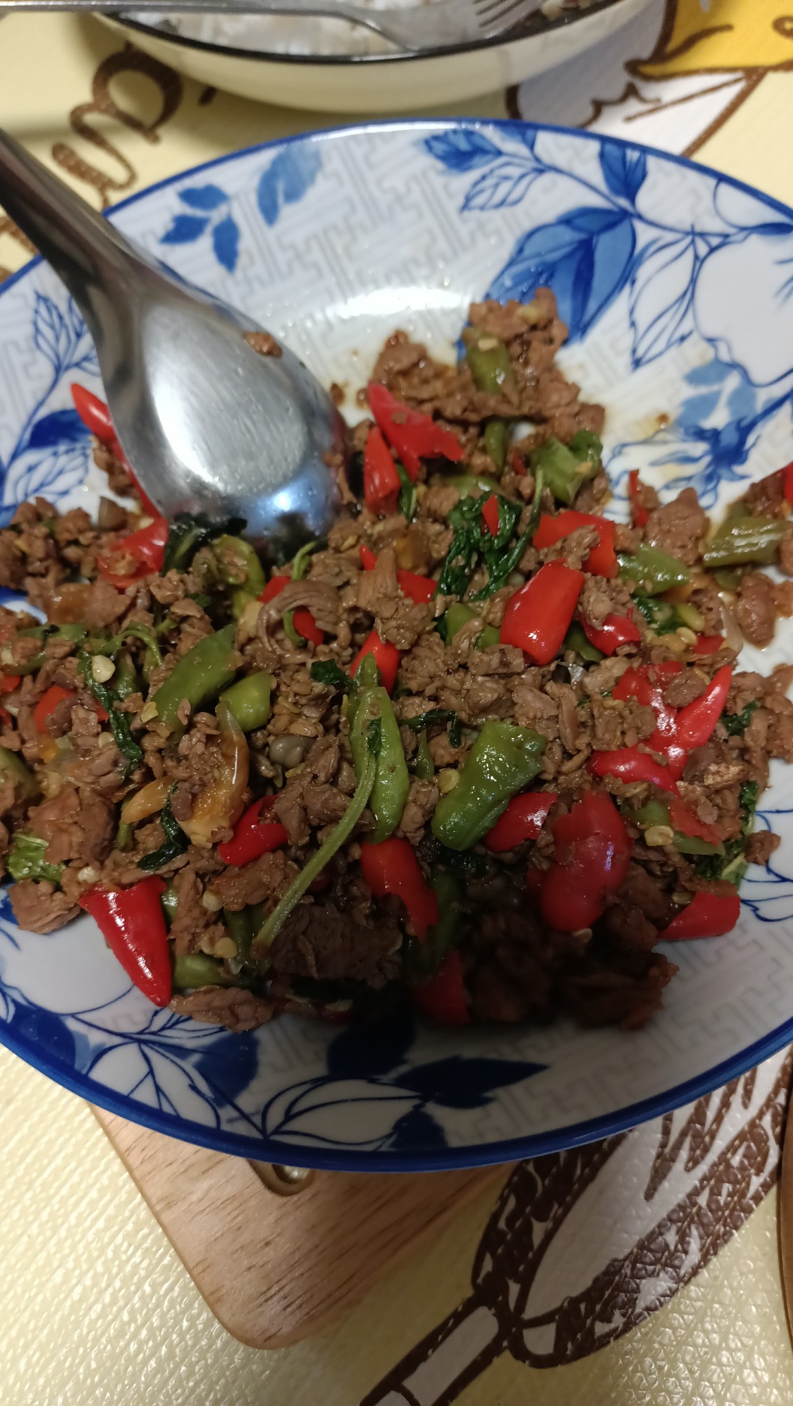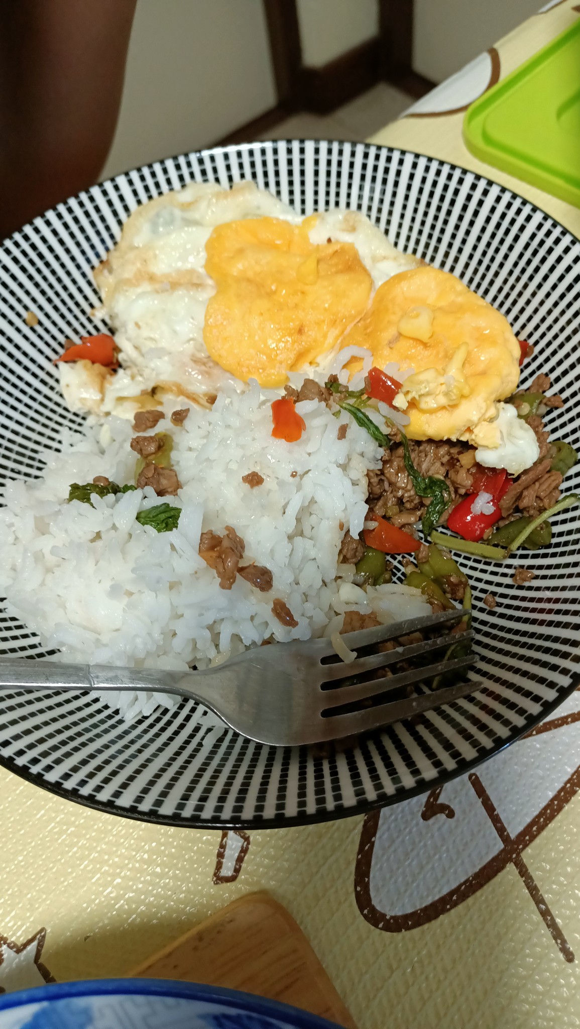 มื้อเย็นกะเพราเนื้อ ไข่ดาว พริกน้ำปลาครับ