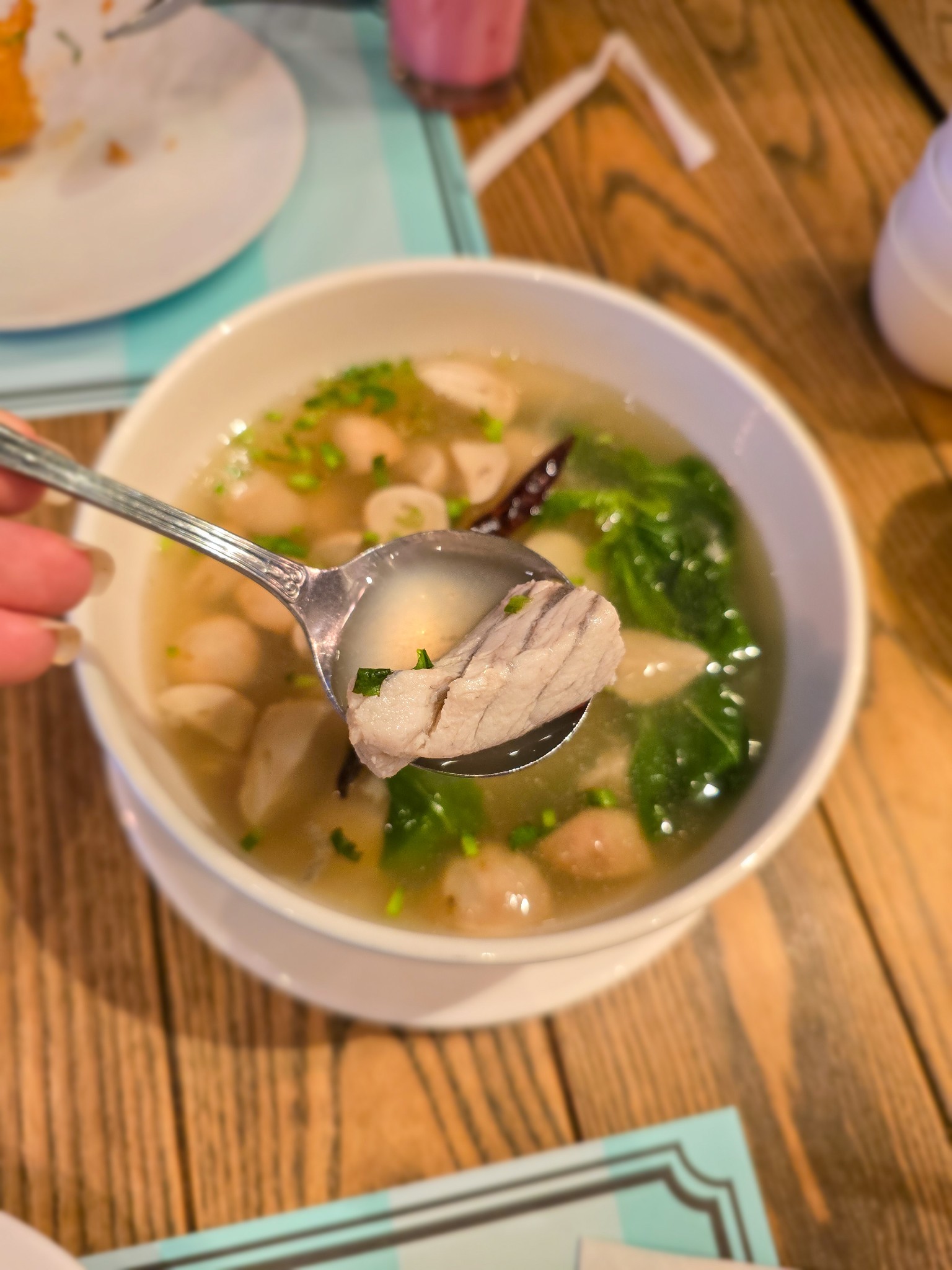 แต่ก็มีเมนูเด็ดอย่าง ต้มแซ่บปลากะพง ที่ให้เนื้อปลากะพงไร้ก้างมาจุก ๆ น้ำซุปแซ่บจัดจ้าน