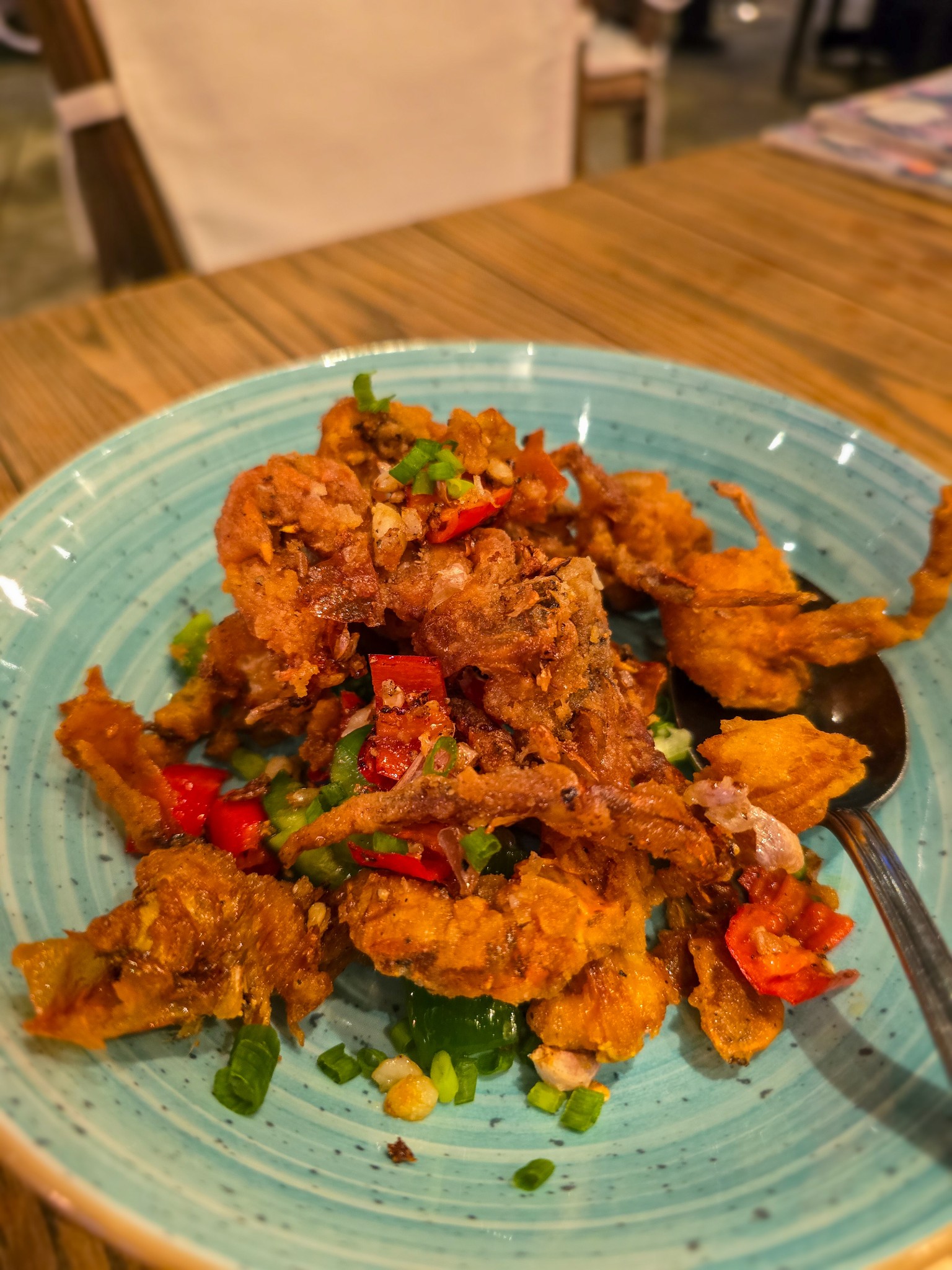 และ ปูนิ่มผัดพริกเกลือ ปูนิ่มทอดกรอบ รสเผ็ดเค็มกำลังดีครับ