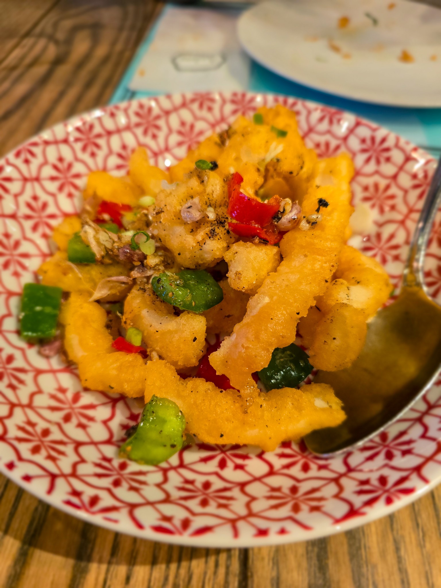 หมึกทอดกรอบผัดพริกกับเกลือ