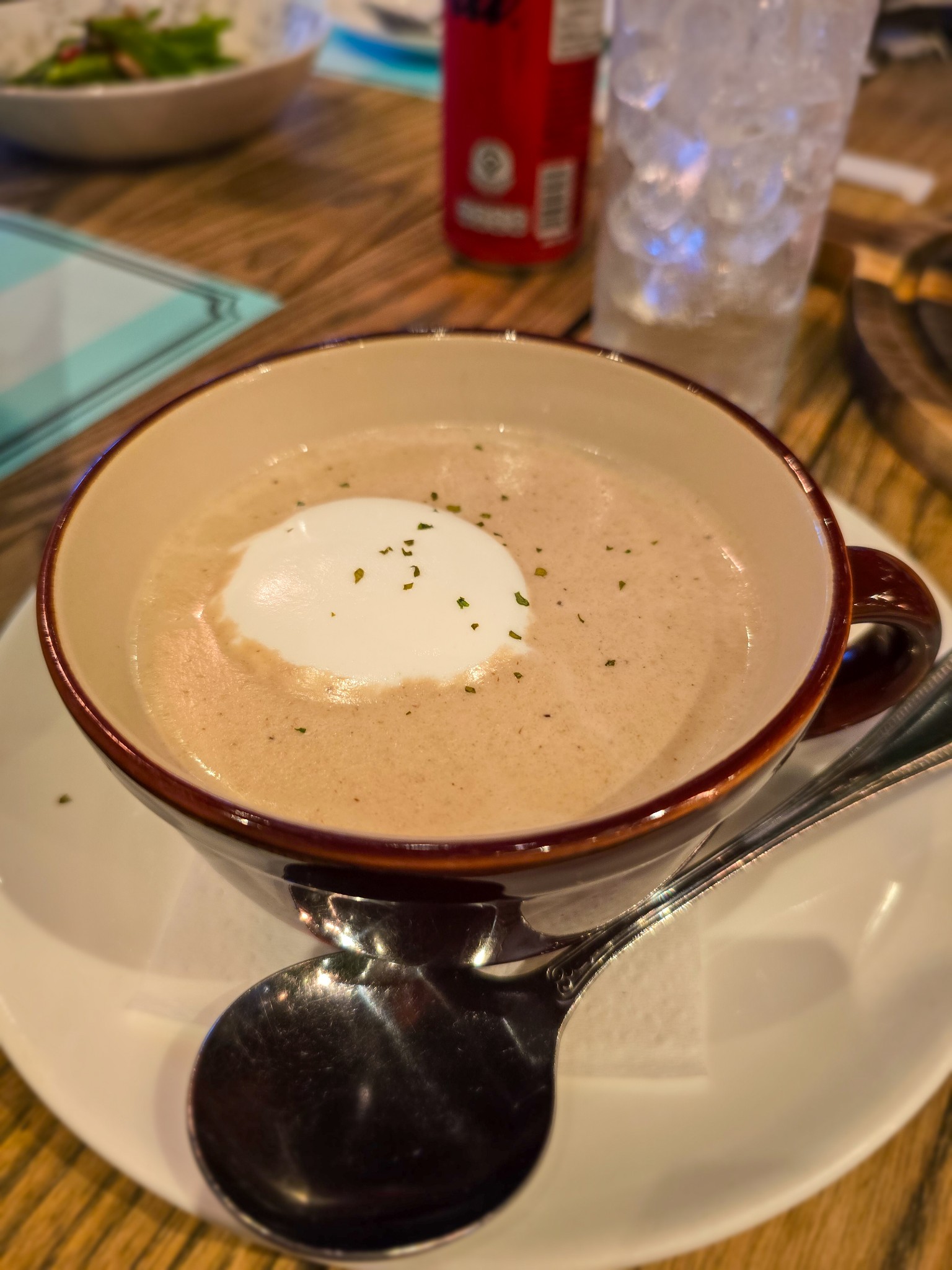ด้านซุปมี ซุปเห็ดออเดรย์ เข้มข้น มีกลิ่นทรัฟเฟิลจาง ๆ