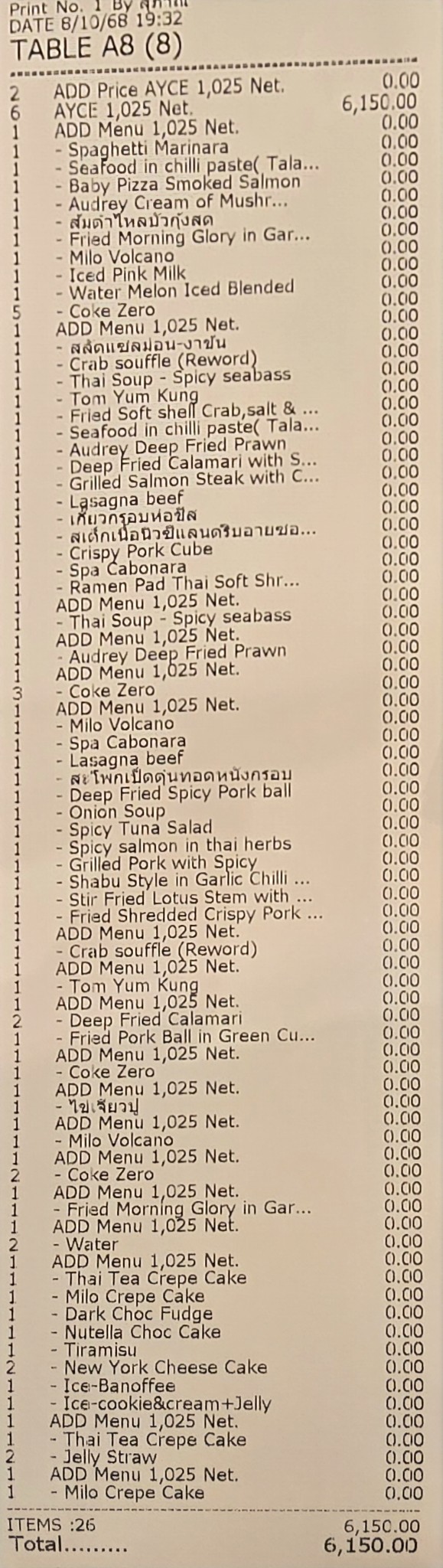 รวมมื้อนี้สั่งไปทั้งหมด 56 ที่ (ไม่รวม Coke Zero 13 กระป๋อง และน้ำเปล่า 4 ขวด) อิ่มแบบจุก ๆ กินกันเยอะ ๆ แบบนี้แหละครับถึงจะได้ลองหลากหลายเมนู คุ้มค่ามาก ๆ!