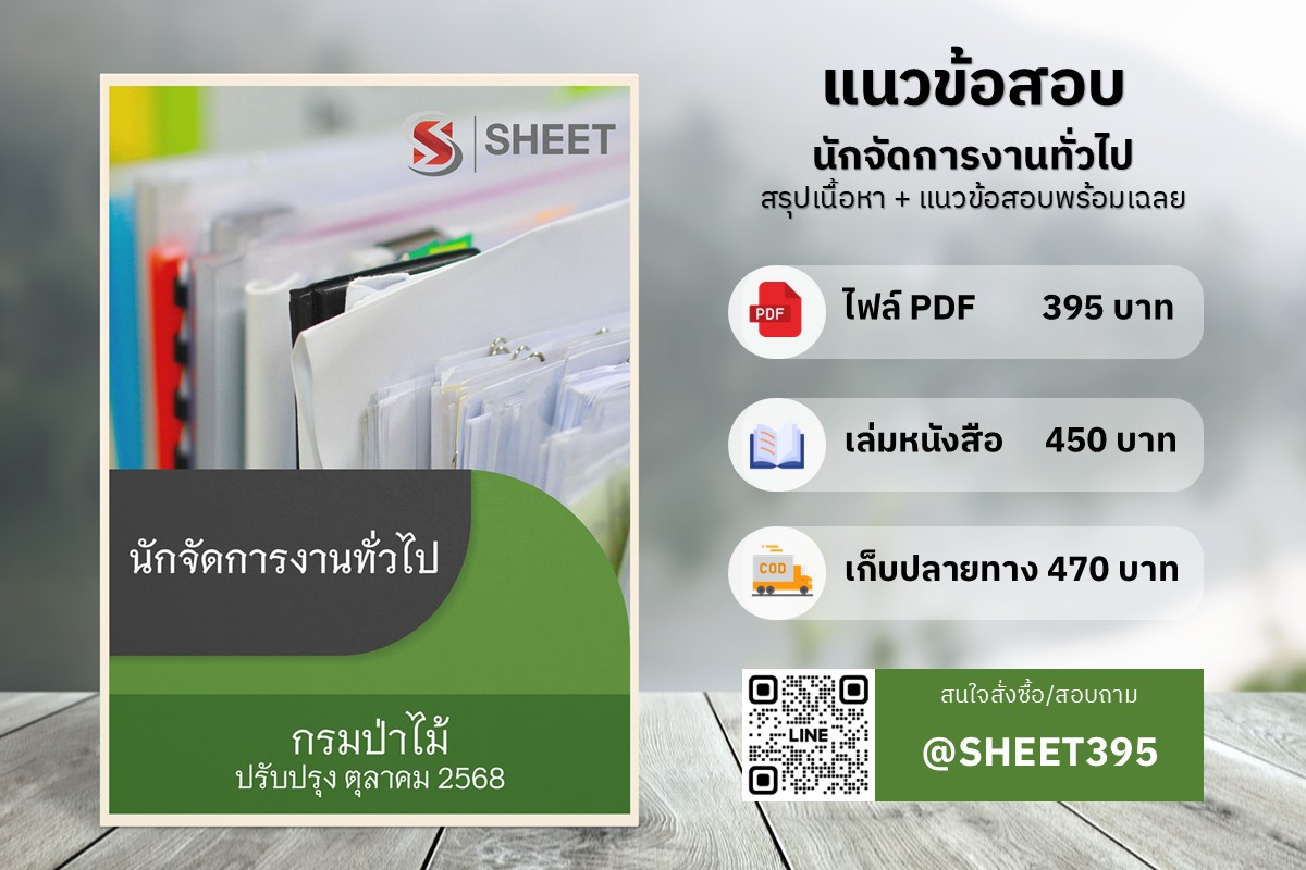 แนวข้อสอบ นักจัดการงานทั่วไป กรมป่าไม้ (พนักงานราชการ) ฉบับสมบูรณ์ ตุลาคม 2568 สรุปเนื้อหา + แนวข้อสอบพร้อมเฉลยอธิบาย จัดทำโดยทีมงานมืออาชีพมากประสบการณ์ ครบถ้วนทุกเนื้อหาในเล่มเดียว ตรงตามประกาศสอบ