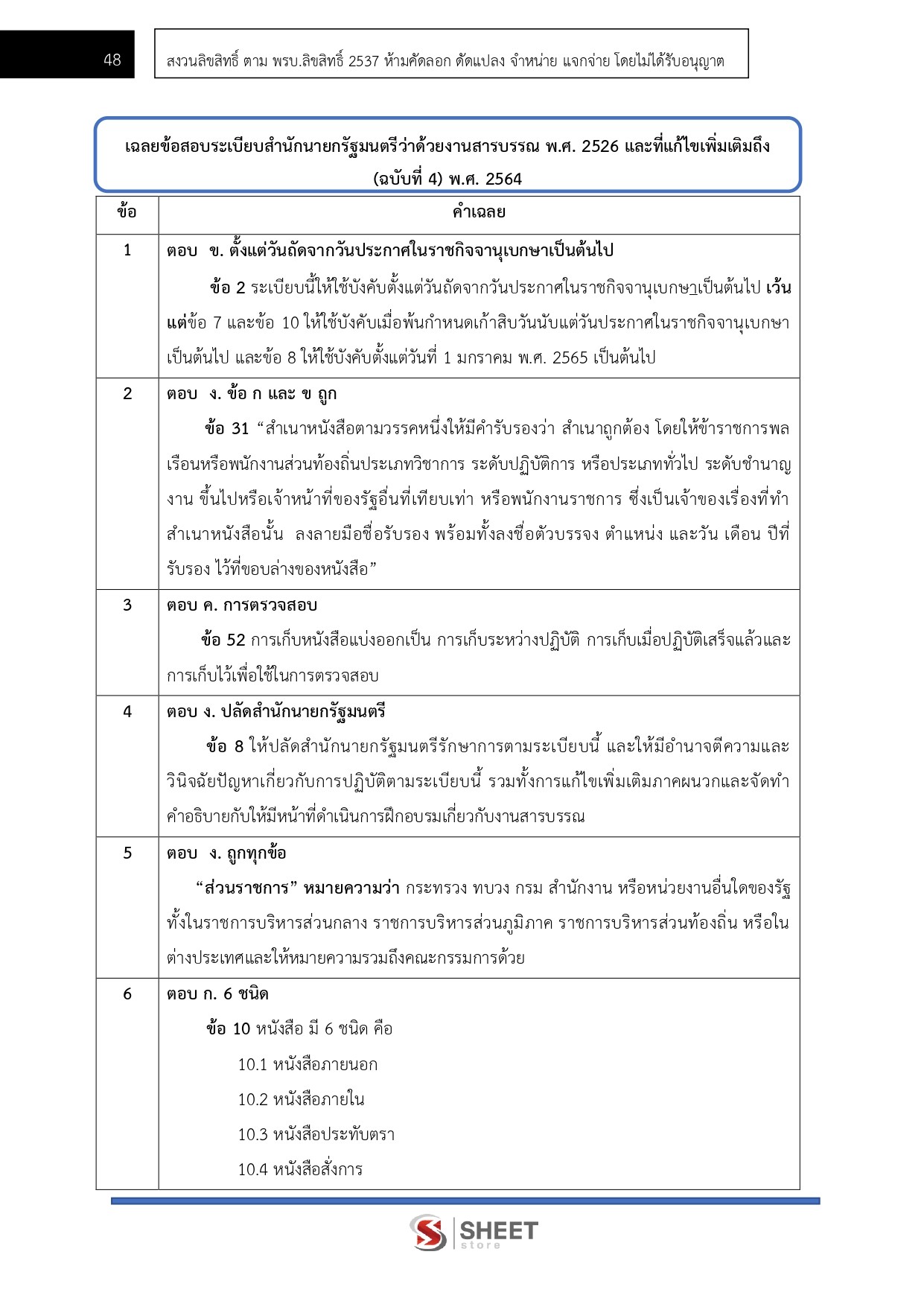 - แนวข้อสอบสรุปสาระสำคัญระเบียบสำนักนายกรัฐมนตรีว่าด้วยงานสารบรรณ พ.ศ. 2526 และที่แก้ไขเพิ่มเติมถึง (ฉบับที่ 4) พ.ศ. 2564