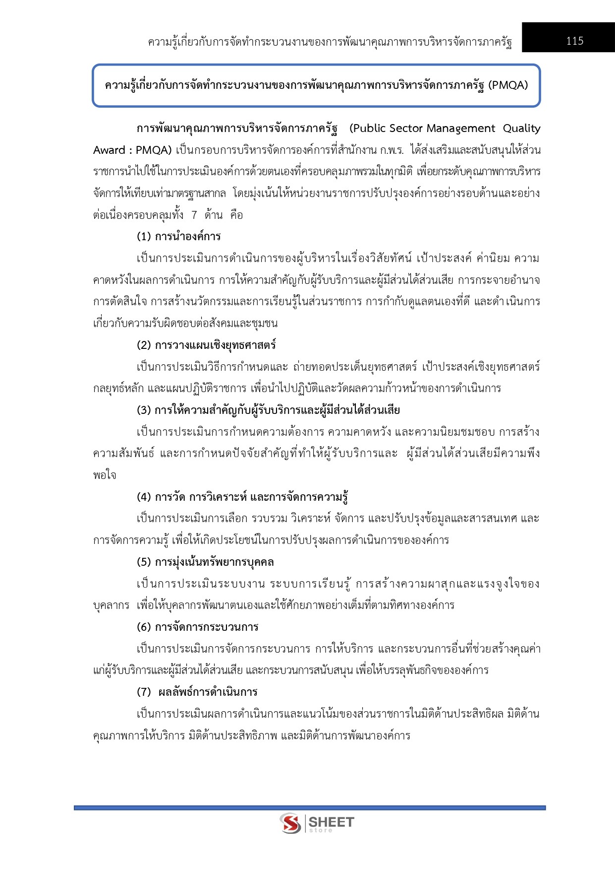 - ความรู้เกี่ยวกับการจัดทำกระบวนงานของการพัฒนาคุณภาพการบริหารจัดการภาครัฐ (PMQA)