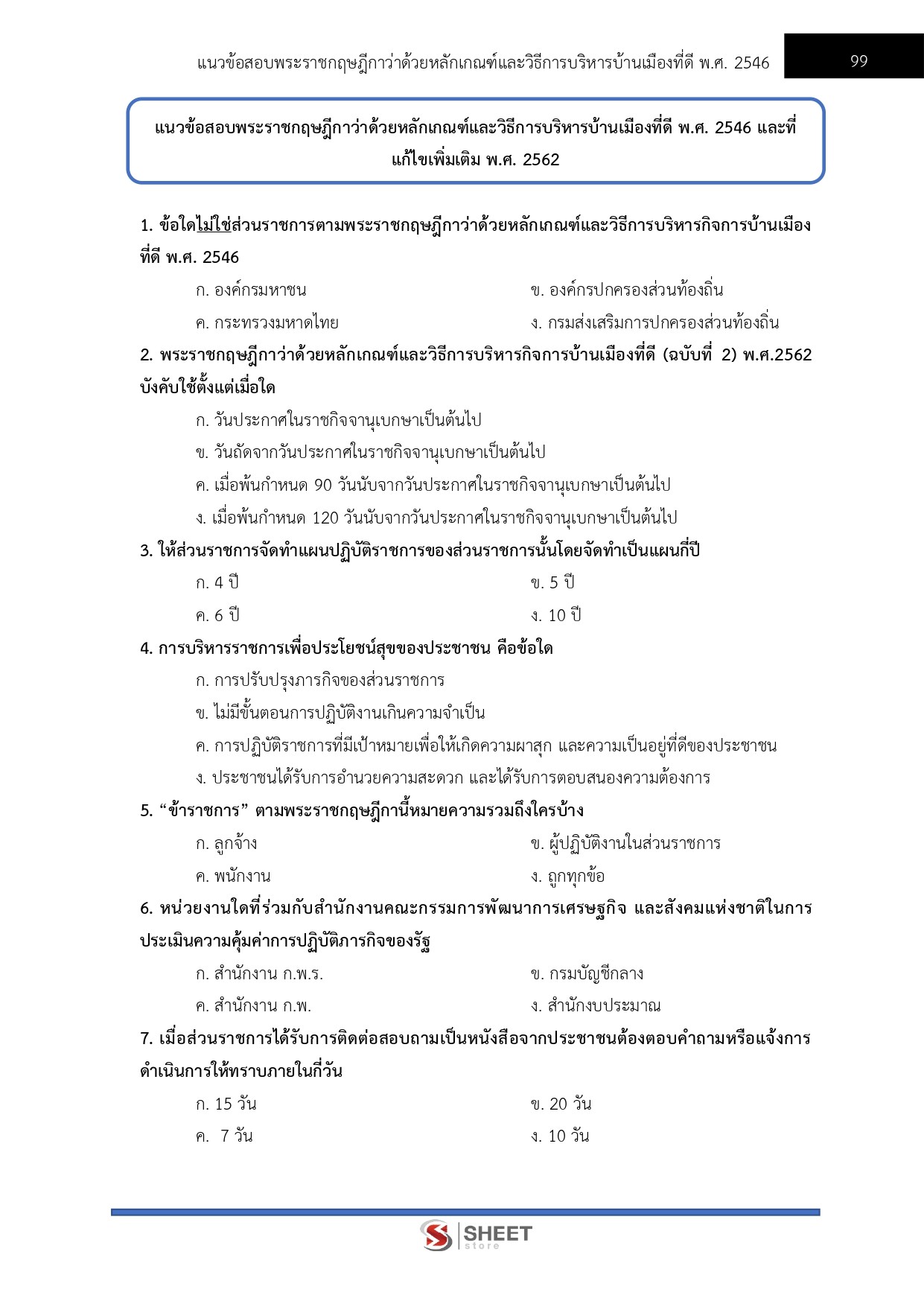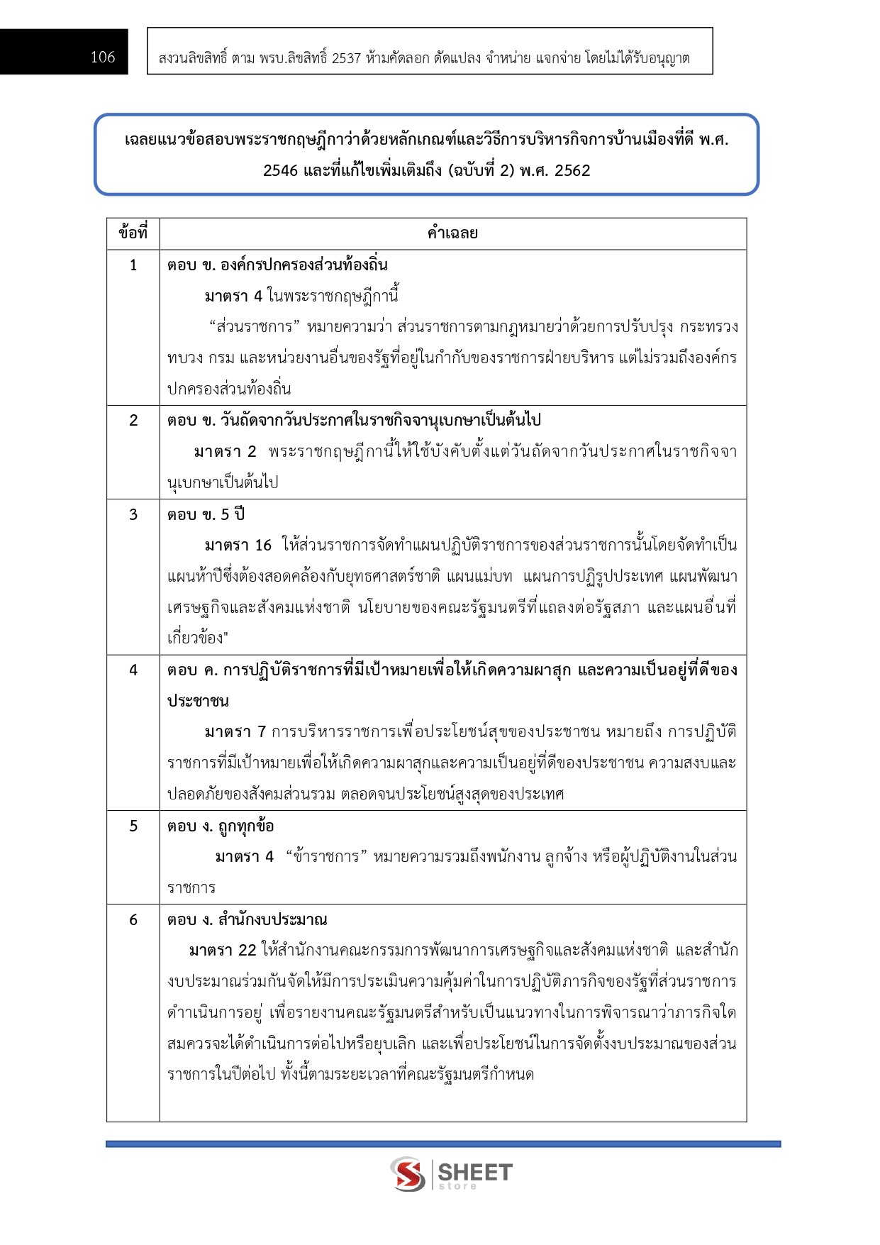 - แนวข้อสอบสรุปสาระสำคัญพระราชกฤษฎีกาว่าด้วยหลักเกณฑ์และวิธีการบริหารกิจการบ้านเมืองที่ดี พ.ศ. 2546 และที่แก้ไขเพิ่มเติมถึง (ฉบับที่ 2) พ.ศ. 2562