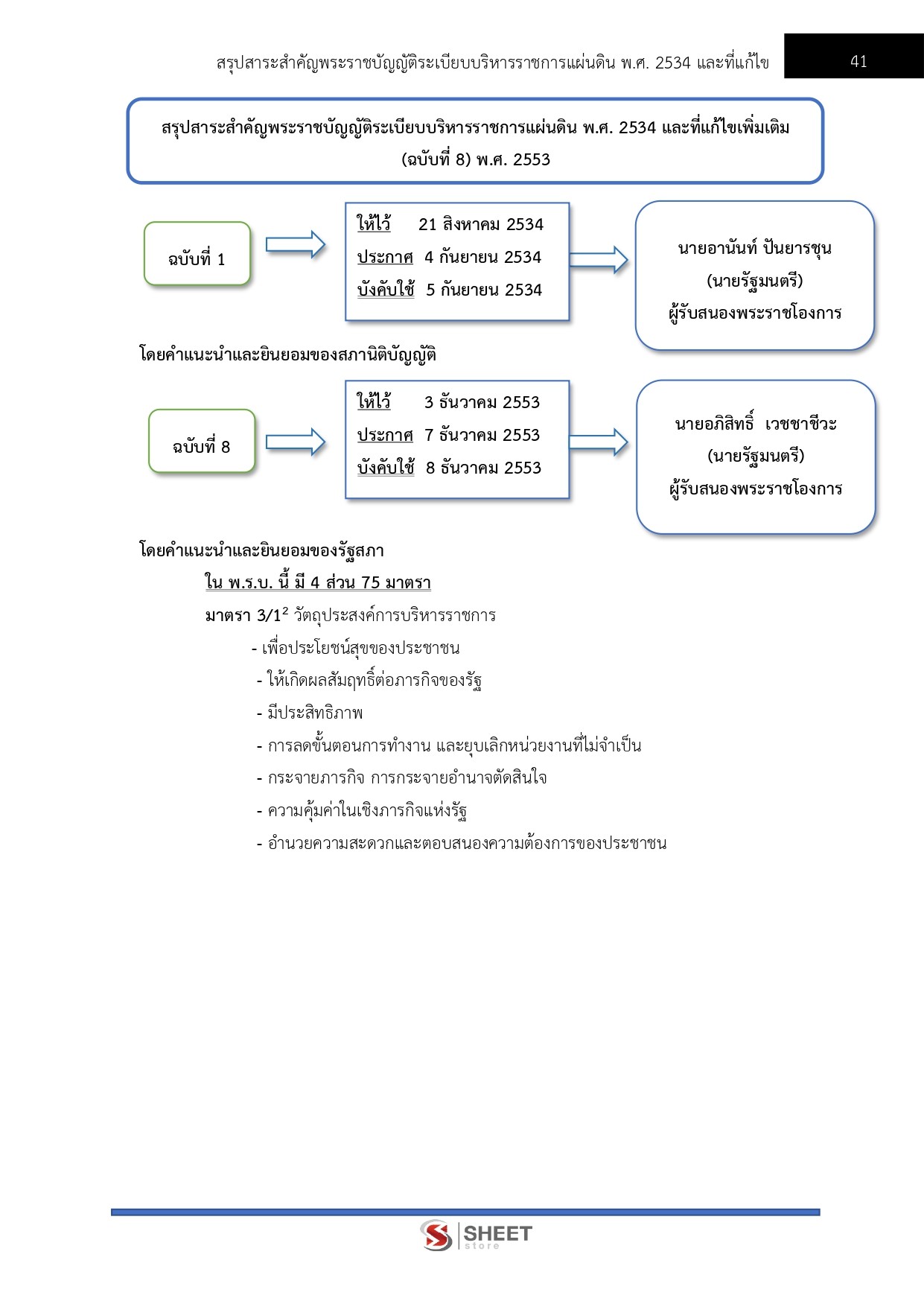 - แนวข้อสอบสรุปสาระสำคัญพระราชบัญญัติระเบียบบริหารราชการแผ่นดิน พ.ศ. 2534 และที่แก้ไขเพิ่มเติม (ฉบับที่ 8) พ.ศ. 2553