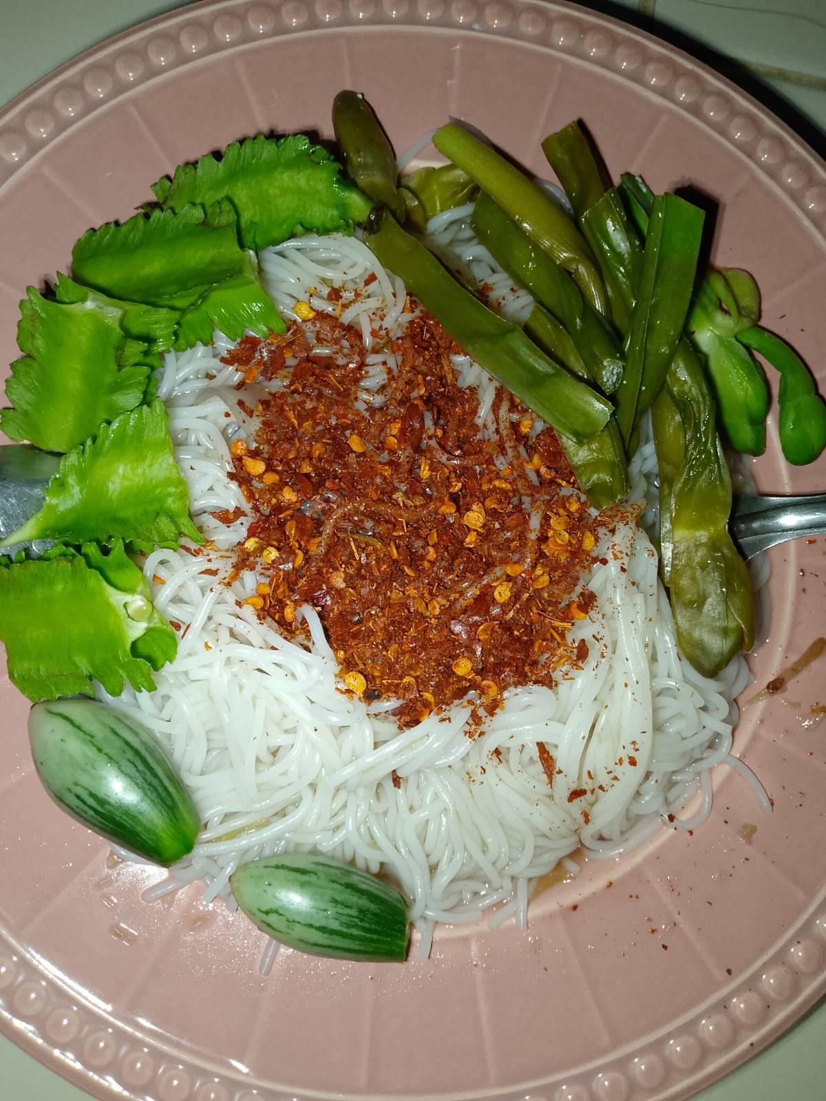 มื้อเย็นวันนี้(09/10/2568)กับเมนู"ขนมจีนน้ำปลาร้า" กันครับ😊😊😊🥰