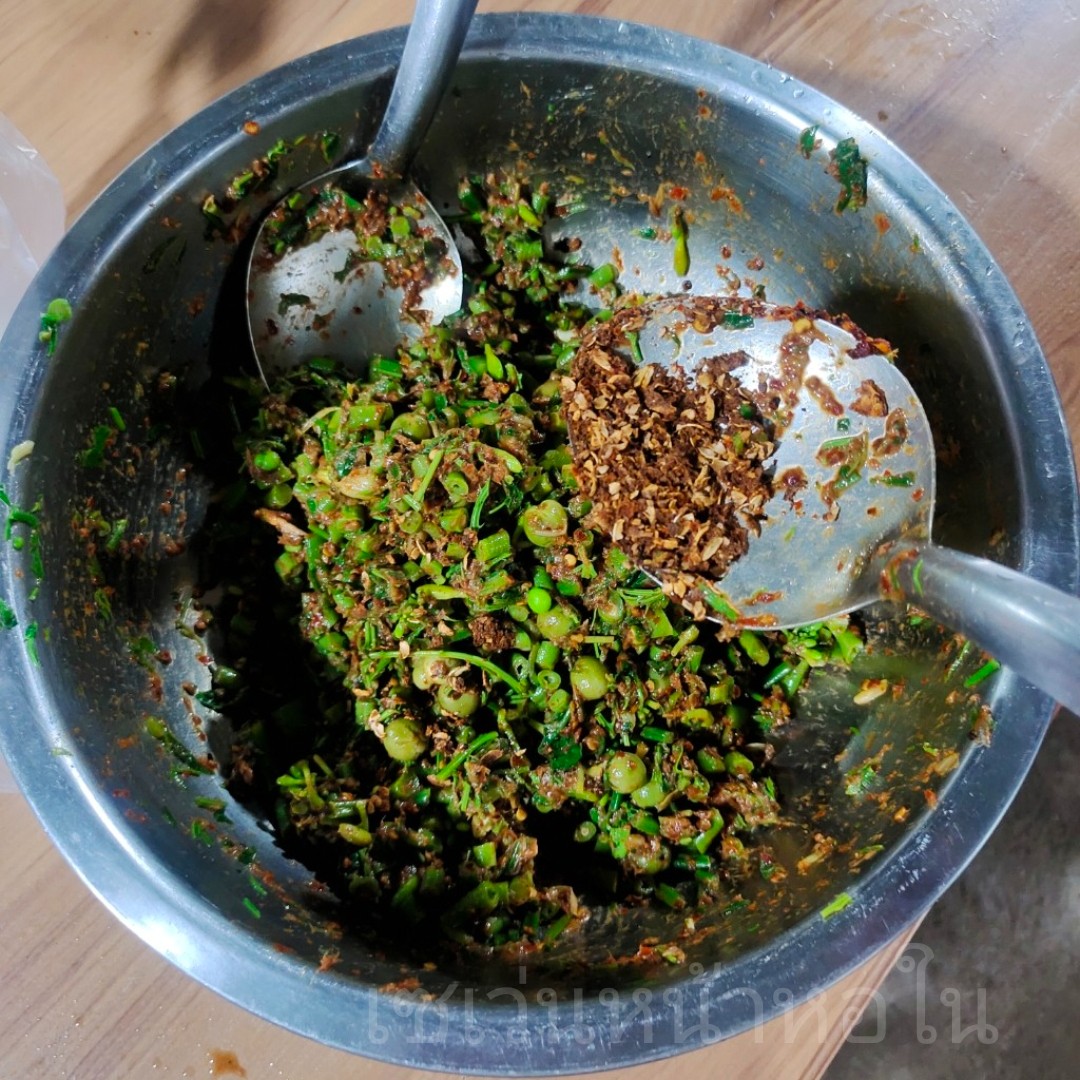 นำไปคลุกเคล้ากับเครื่องจุ๊บที่จะมีกลิ่นมะแข่นเป็นเอกลักษณ์