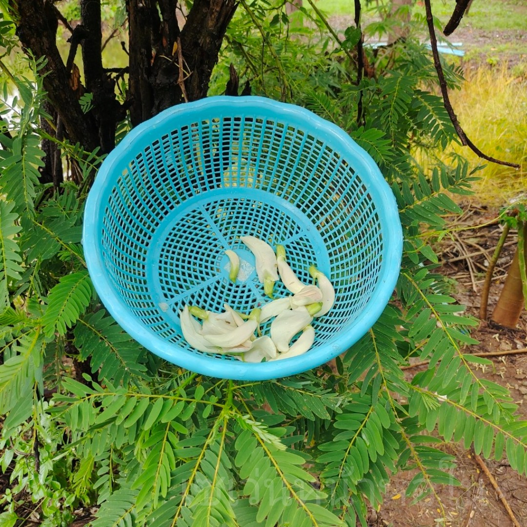 ล้างผักทุกอย่างให้สะอาด ดอกแคก็แกะไส้ขมๆออก ครับ
