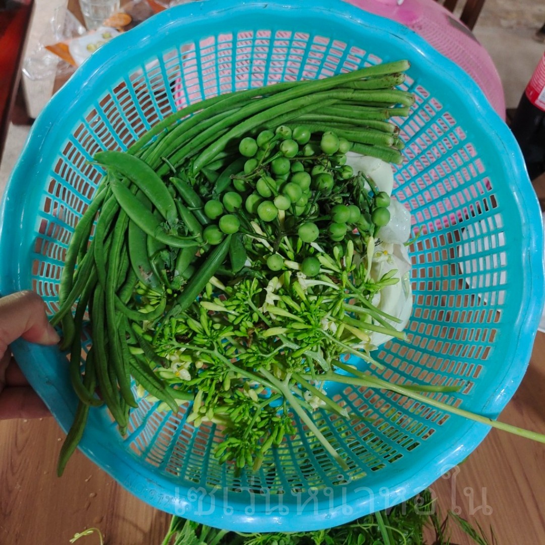 ผักแว่น ดอกมะละกอ ถั่วฝักยาว มะเขือเปราะ มะเขือพวง ประมาณนี้ครับ