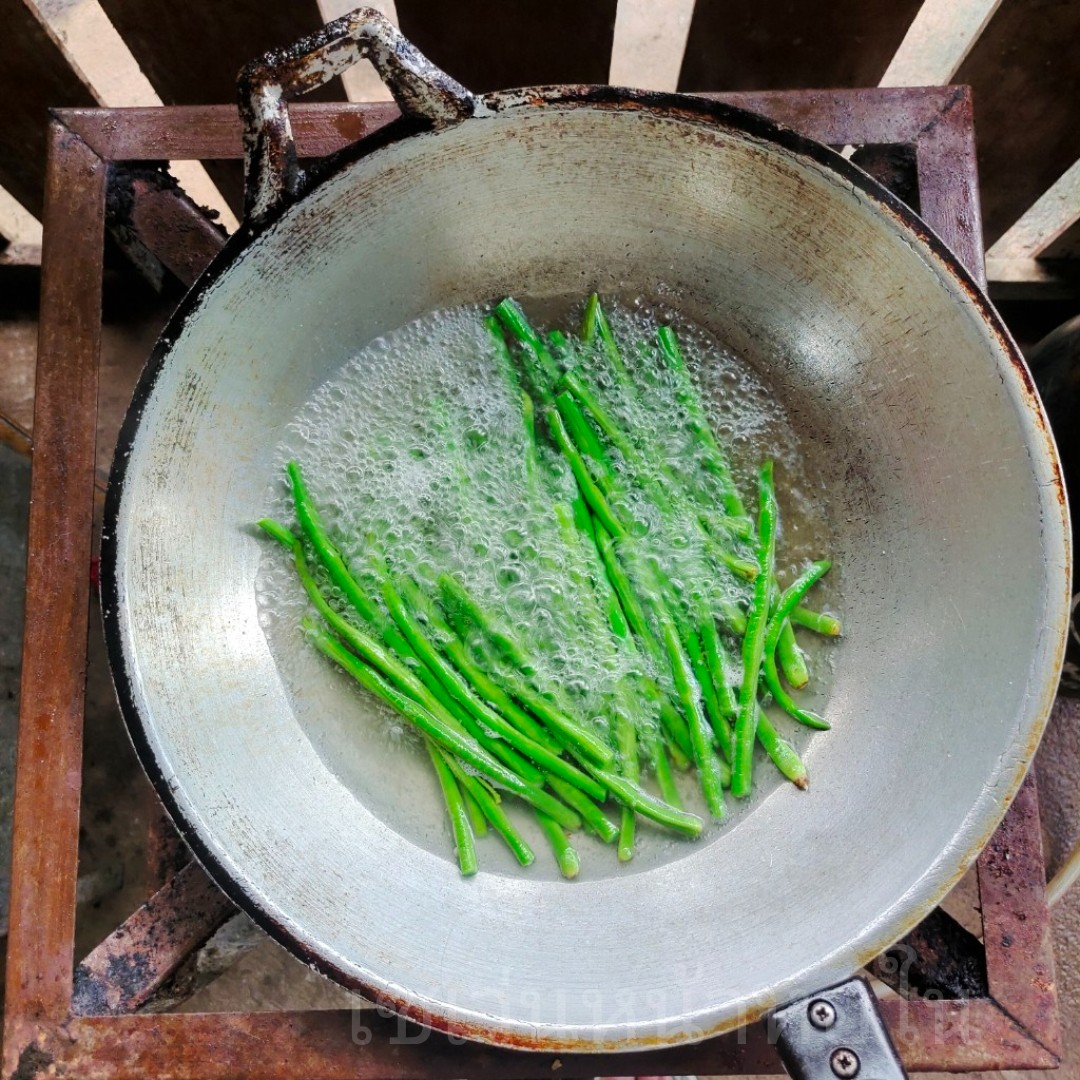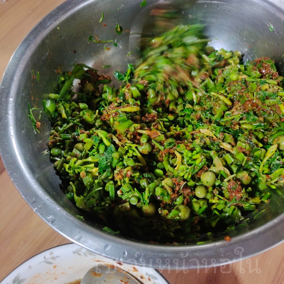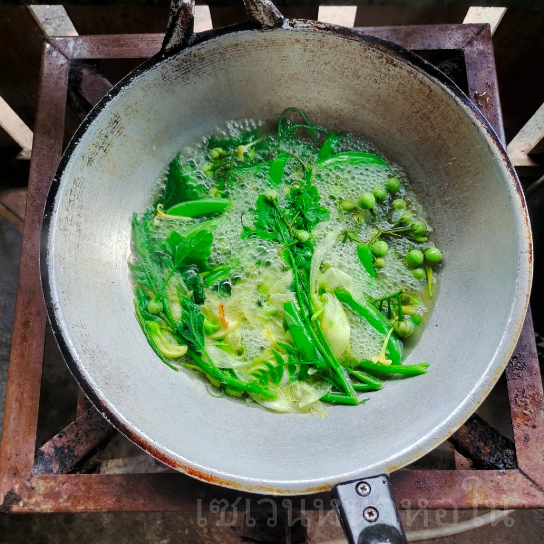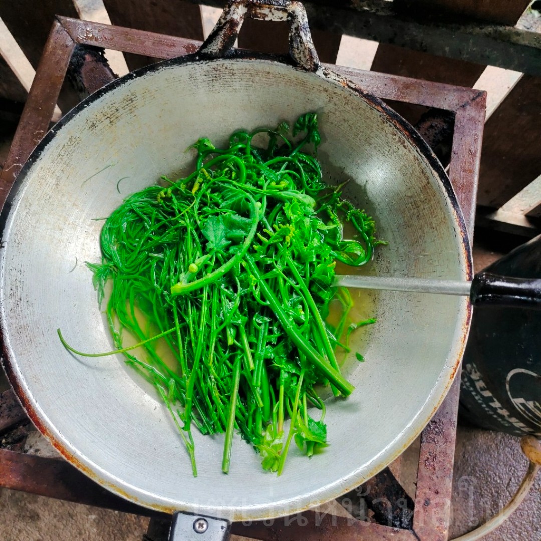 การจะทำเมนูนี้เราต้องมีผักครับ ซึ่งแบบดั้งเดิมที่ผมเคยกินก็จะเป็นยอดผักต่างๆ