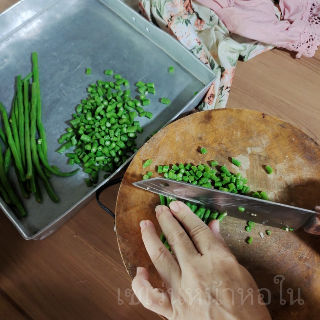 เสร็จแล้วนำมาหั่นพอหยาบๆครับ