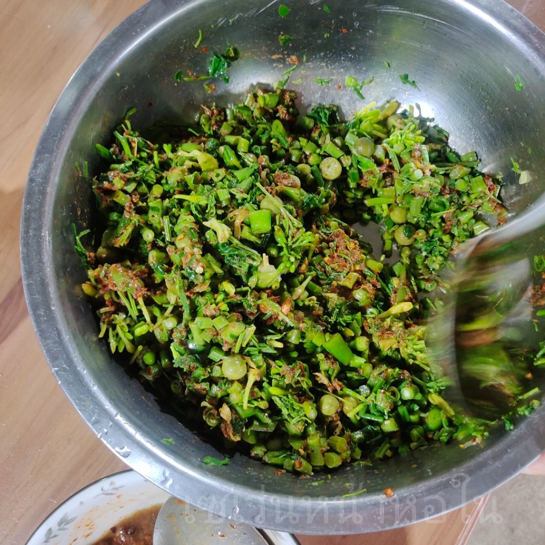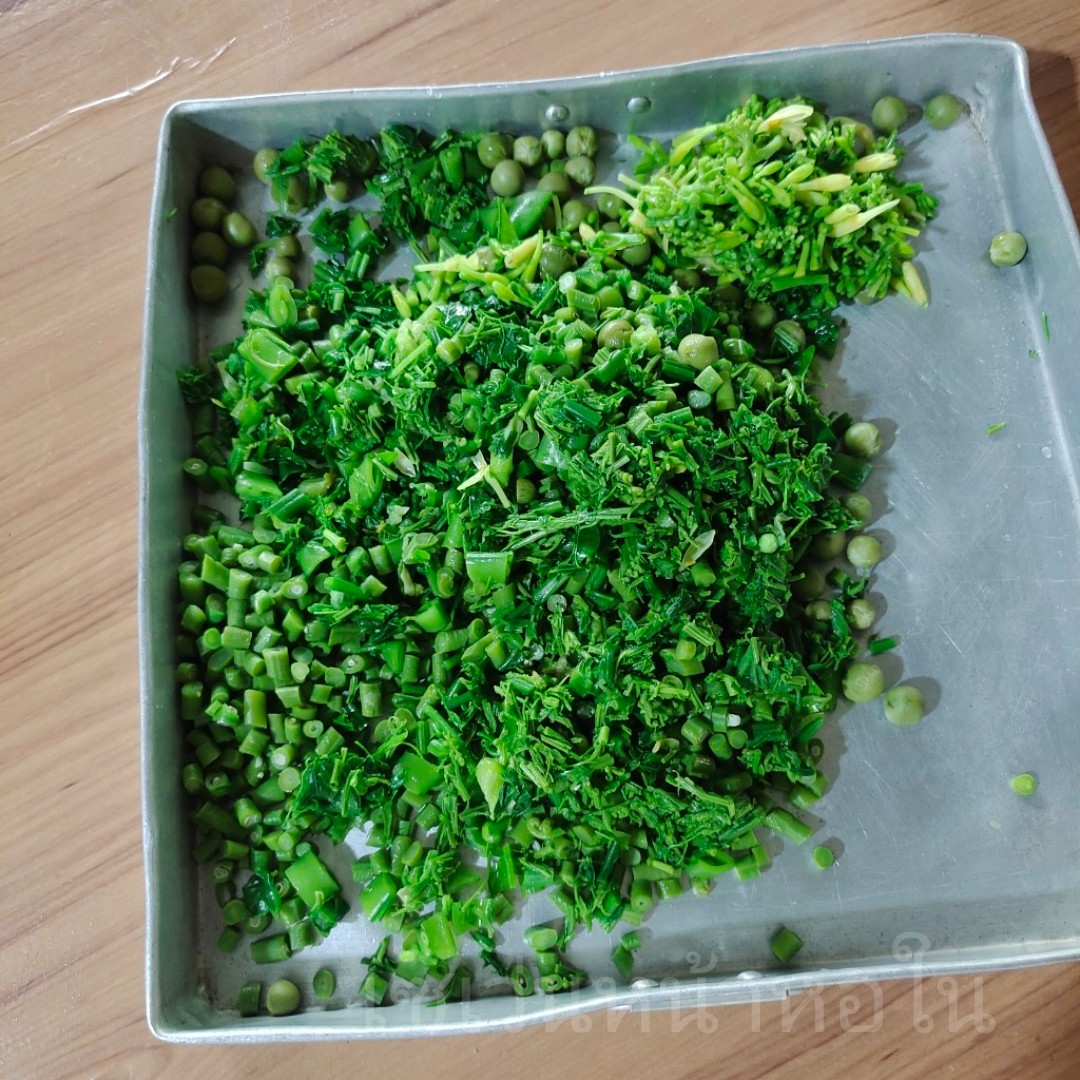 เป็นการนำผักต่างๆไปลวกแล้วนำมาหั่นเป็นชิ้นเล็กๆ