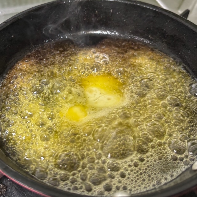 ต้มเนยให้ตกตะกอนเลย เอาไว้ใส่ตอนผสมเข้ากับเนยแป้ง
