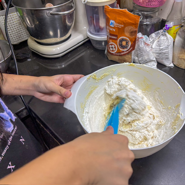 ตีเนยเข้ากับน้ำตาลก่อน ให้ขึ้นขาวเลยนะครับ