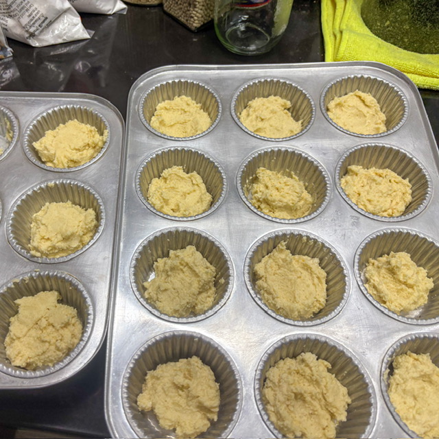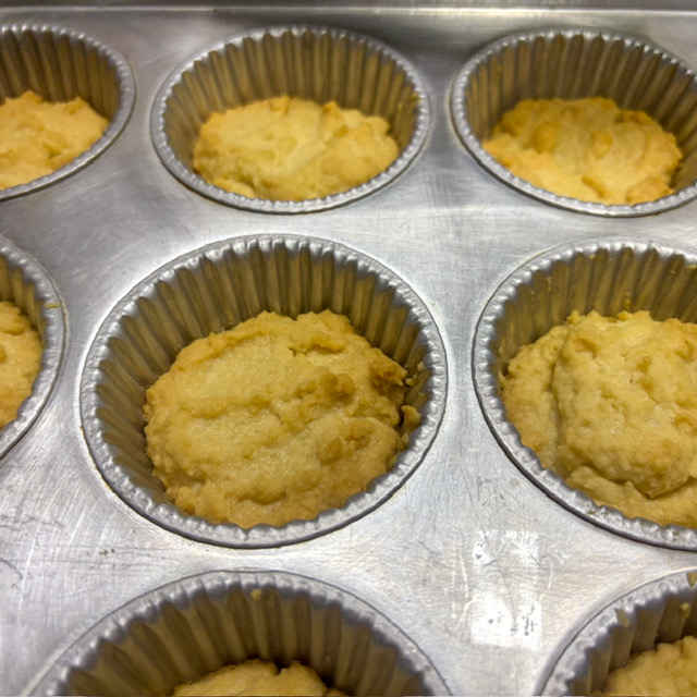 คราวนี้ก็ตักใส่พิมพ์ที่มีเลย แล้วเอาเข้าแช่เย็นสัก 30 นาที แล้วก็เตรียมเตาอบไว้ 160 องศาไฟบน ใช้เวลา 30-35 นาที ประมาณนั้น อันนี้ขั้นอยู่กับศักยภาพเตาของแต่ละบ้าน
